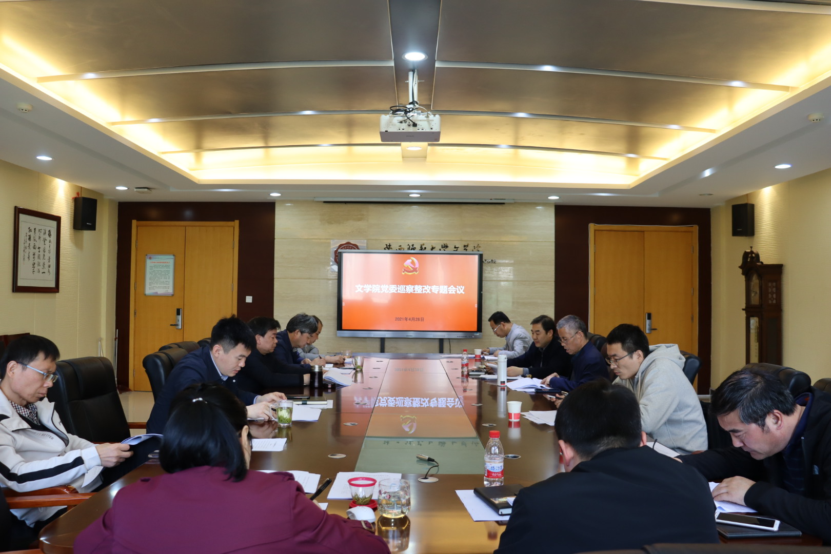 闫文杰首先对巡察整改工作作了整体安排部署。他认为,巡察整改工作是对公司领导班子履职的“正衣镜”,也是对公司党建、立德树人、师德师风、思想政治等工作的一次全面系统的建设和强化。要始终坚持问题导向,聚焦问题,深入剖析原因,坚持标本兼治,建立整改常态化、长效化机制。孙清潮详细解读了《文公司党委落实巡察反馈意见整改方案》的整体情况和《文公司党委落实巡察反馈意见整改工作任务清单》的具体内容。院领导班子成员围绕整改工作任务清单逐条认领,进行表态发言,落实工作责任。张新科希望班子成员落实一岗双责,紧扣立德树人根本任务,明确学科发展方向,凝练办学特色,凝聚全院共识,针对工作任务清单提出切实有效的推进思路和具体举措。