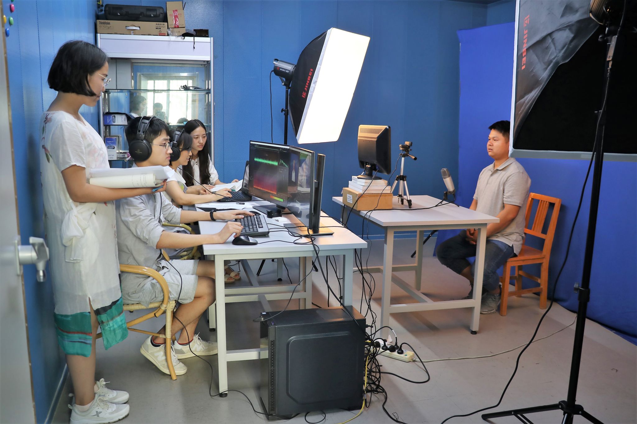 语言科学实验室以语言学为基础,科学测量统计为方法,培养交叉学科语言学人才的现代化实验室。本实验室有符合国际标准的隔音屏蔽录音室,核心仪器是先进的专业生理语言学仪器,包括电子喉头仪、气流气压仪、鼻流计、电子声门仪、专业田野调查声卡和话筒等。录音室内还配有可供录制语言文化使用的提词器。