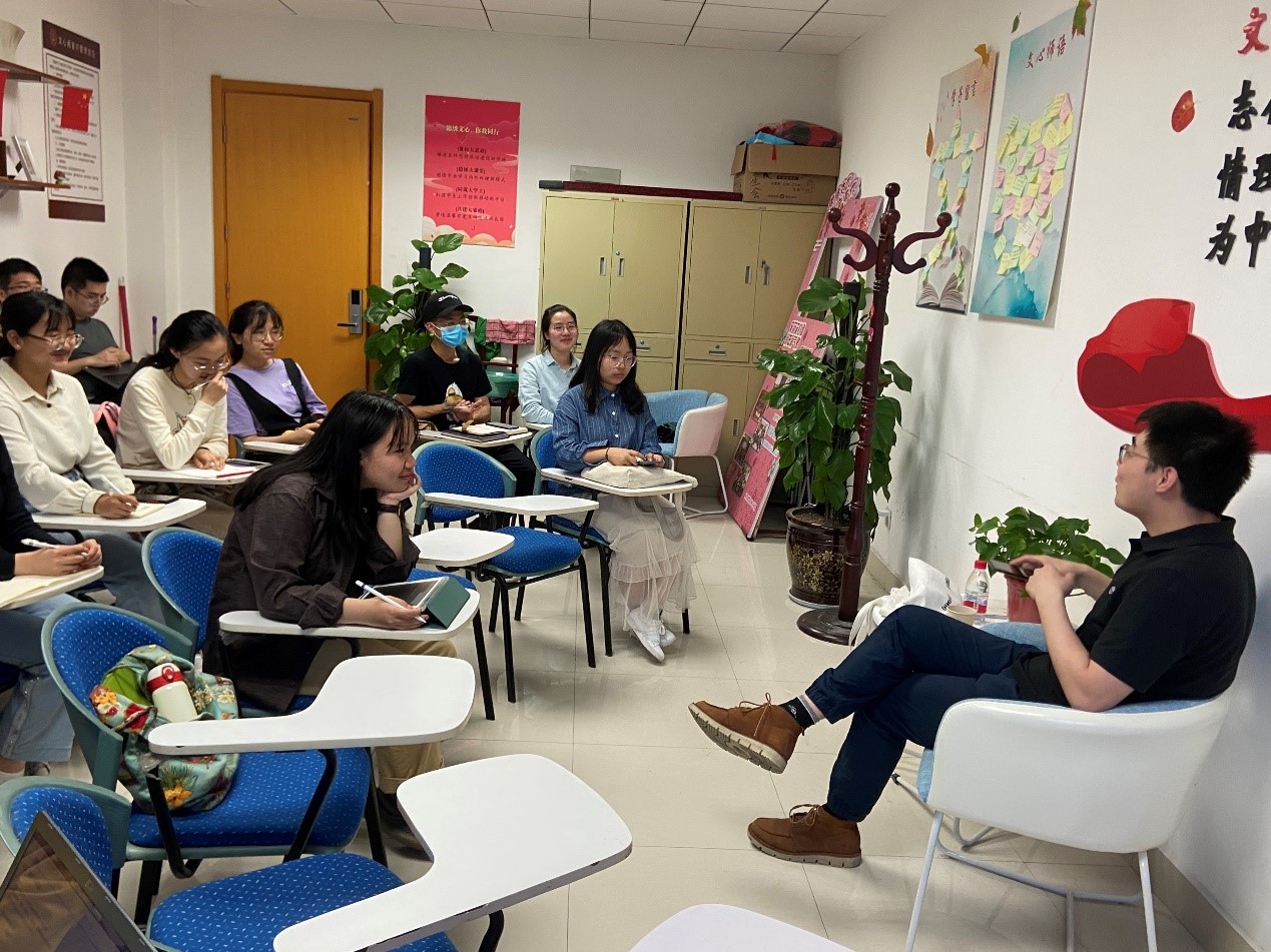 5月12日晚,本学期第12期(总第272期)文心阁师生面对面交流活动顺利举行,9428cn太阳集团古天乐文艺学教研室田延老师应邀参加,从“文本•理论•历史——理解文学阅读的三个要素”出发,与同学们进行了文学阅读方面的交流与互动。