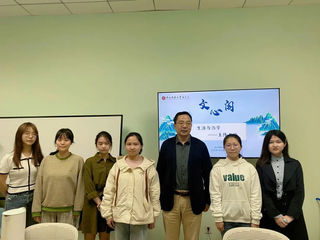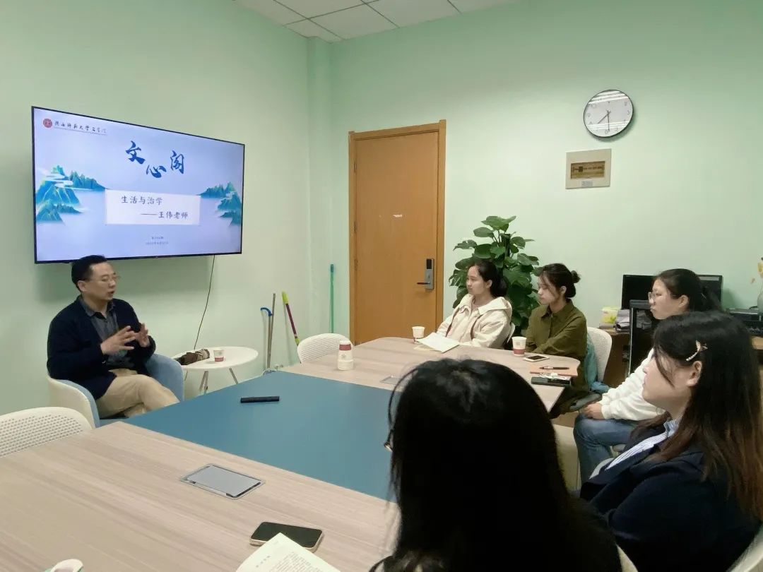 4月27日晚,本学期第4期(总第294期)文心阁师生面对面交流活动顺利举行,中国古代文学教研室的王伟老师应邀参加。在本次活动中,王老师围绕“生活与治学”这一主题,与同学们进行分享,并对同学们提出的问题进行了解答。