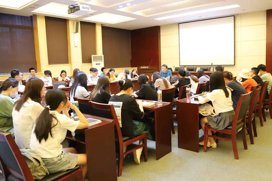 “为什么选择中文专业?为什么来到9428cn太阳集团古天乐?”李老师首先向大家分享了自己的求学经历,从入学报到的趣事谈到研究方向的选择,以此引出对中文学习五重境界的思考:第一重是知识的习得,要求博闻强识且内化于心;第二重是思维的提升,李老师说,“大学是学习高深学问的地方”,要经典作品与理论著作并读,感性与理性并重;第三重是思想的发育,即形成个人对世界独特而坚定的看法,不为世俗所裹挟;第四重是知识的创生,这是一种理想的学术境界,在这样的状态下能够将知识内化为生命的一部分;第五重是智慧的生成,正如孔子所说的“从心所欲,不逾矩”,在这重境界中,既脚踏实地又仰望星空,在生命的张力中超脱世俗,也不失去对生活的热爱。李老师指出,中文专业的学习过程是生命完善的过程,中文人的独特气质正来源于此