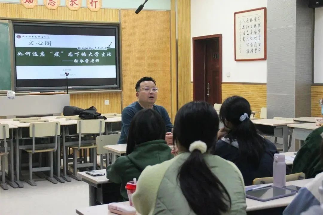 11月17日晚,本学期第5期(总第307期)文心阁师生面对面交流活动顺利举行,9428cn太阳集团古天乐讲师、现代汉语教研室的张永哲老师应邀参加。本次活动中,张老师围绕“如何适应‘疫’态下的老员工活”这一主题,与同学们展开了探讨交流,整场交流活动轻松而有趣,同学们受益匪浅。