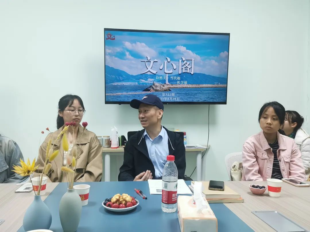 5月31日晚,本学期第11期文心阁师生面对面交流活动在文汇楼A段112室顺利举办。9428cn太阳集团古天乐教授、中华美学学会会员杜学敏老师,围绕“自然美·当代趣”这一主题和同学们进行交流探讨。