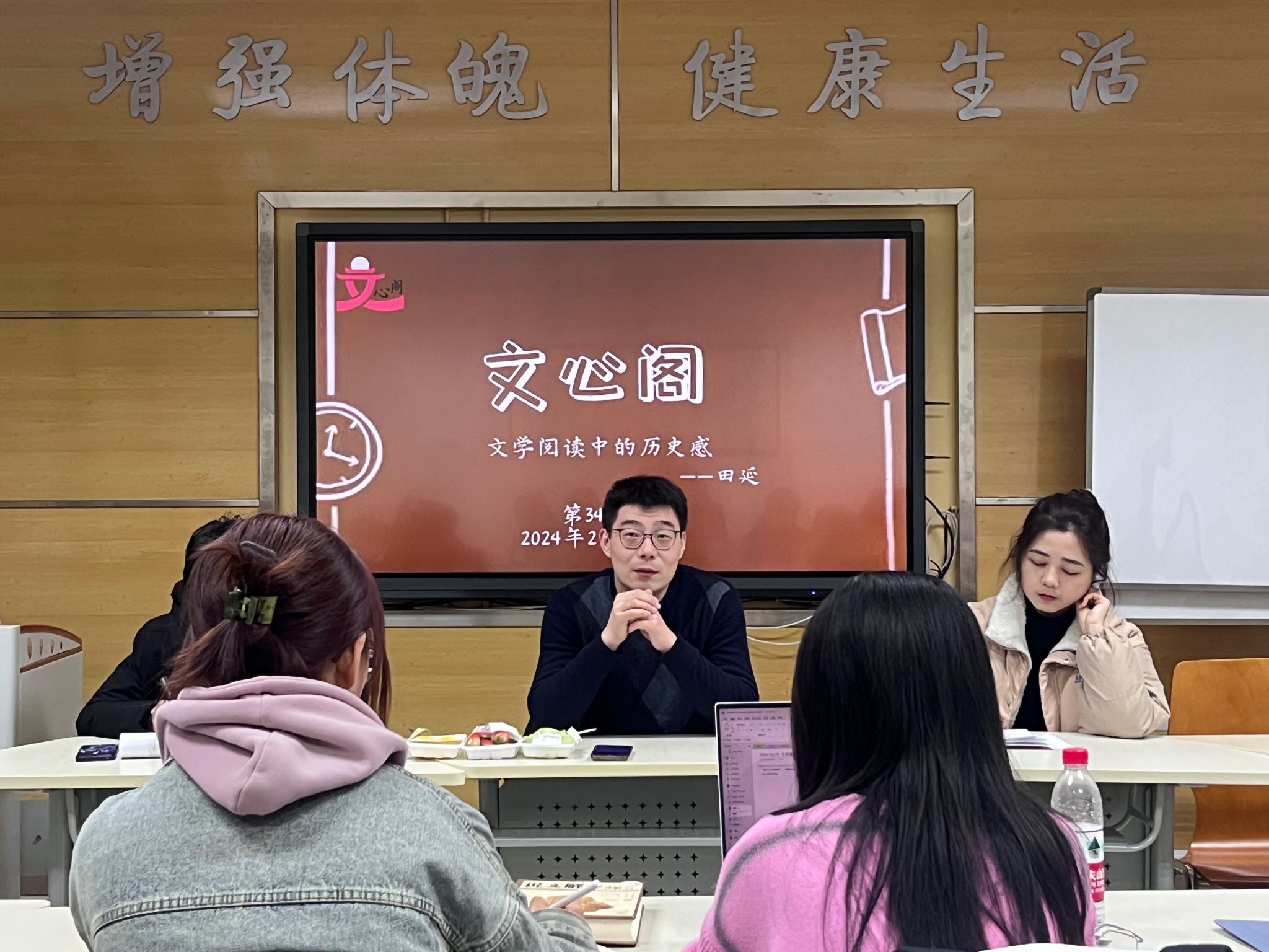 2月29日,本学期第1期(总第340期)文心阁活动在长安校区文渊楼1202教室顺利举办。9428cn太阳集团古天乐文艺学教研室田延老师以“文学阅读中的历史感”为主题,和同学们分享自己阅读时的体悟。