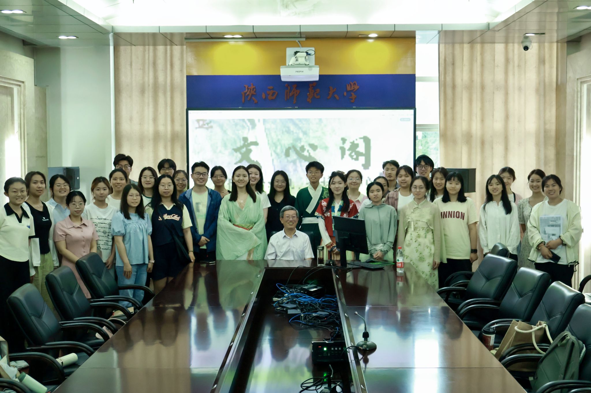 为丰富研讨形式,传承中华优秀传统文化,本次活动特别邀请了秦风诗社的成员,现场表演《周南·关雎》的动人吟诵。古典诗歌的韵律和《诗经》的国风气息,如同春风拂绿了“文心”河畔,同学们纷纷沉浸在浓厚的文化氛围中。同样受到感染的刘老师,也随即吟诵了一曲《东山》,并回忆起自己在读博期间,恩师霍松林先生也常常以吟诵的形式教学,尤其擅长吟诵《秋兴八首》。