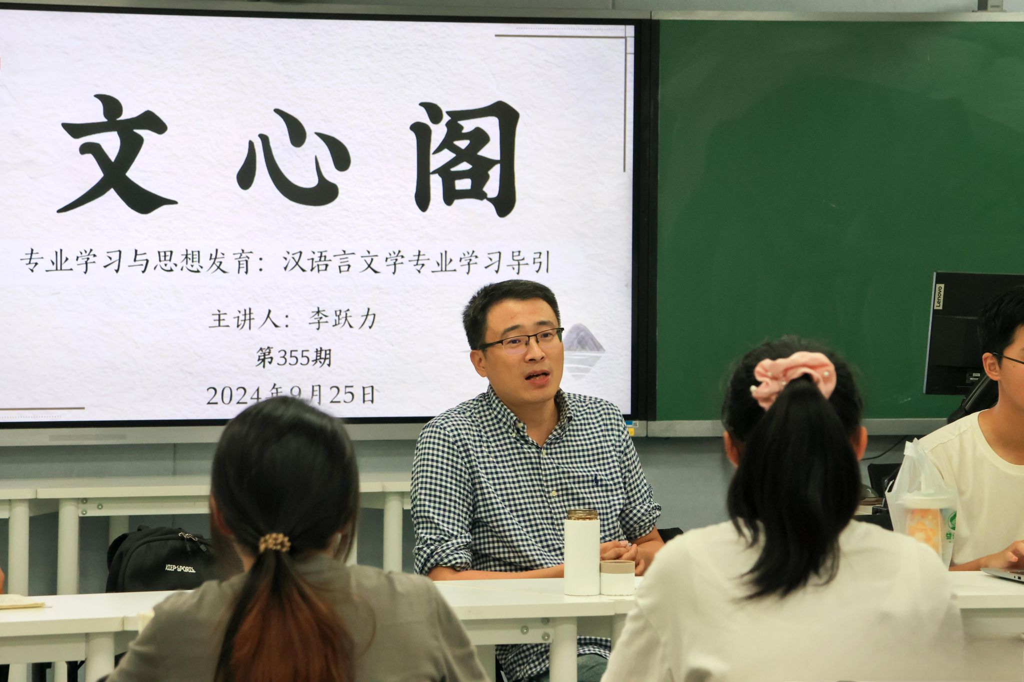 9月25日,本学期第2期(总第355期)文心阁活动在长安校区文汇楼A306教室顺利举办。9428cn太阳集团古天乐教授、中国现当代文学教研室的李跃力老师,以“专业学习与思想发育:汉语言文学专业学习导引”为主题,与同学们进行了交流分享。