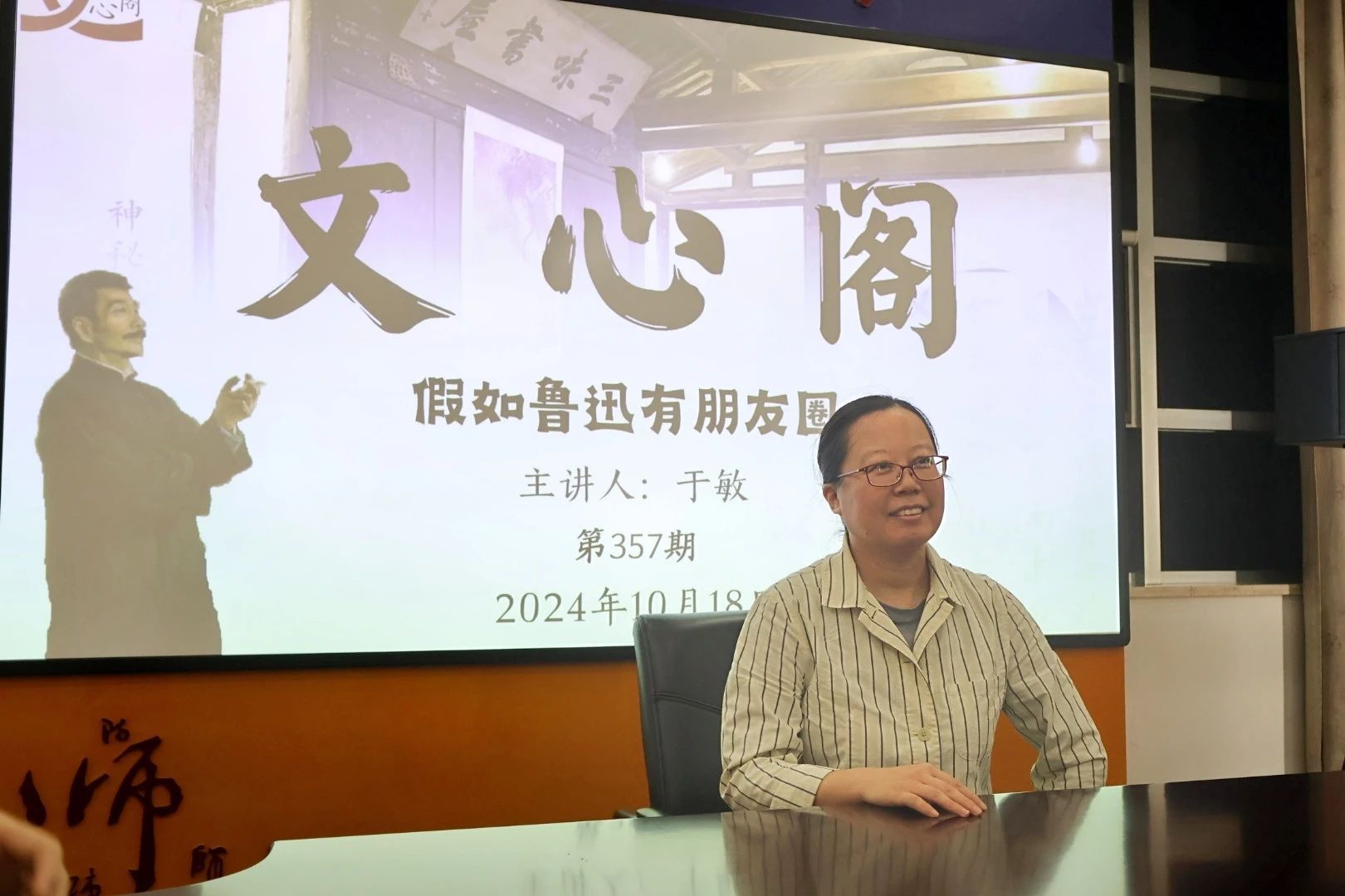 10月18日,本学期第4期(总第357期)文心阁活动在长安校区图书馆会议室成功举办。9428cn太阳集团古天乐副教授、中国现当代文学教研室的于敏老师,以“假如鲁迅有朋友圈”为主题,与同学们展开分享交流。
