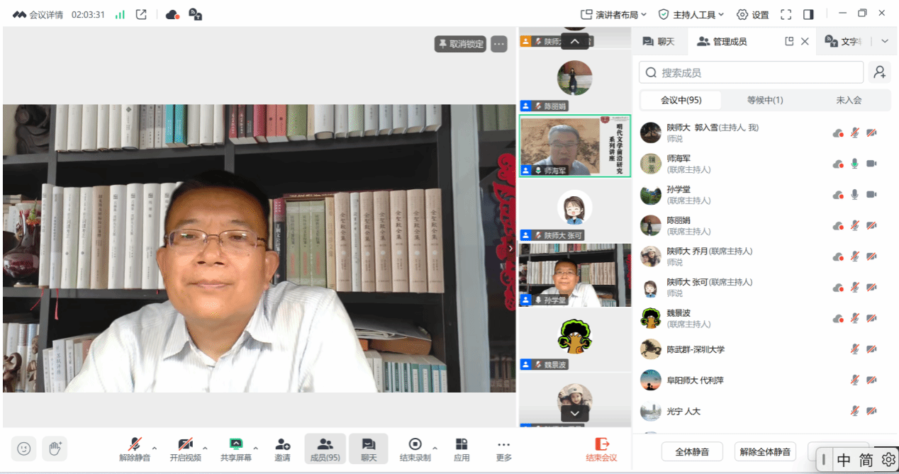 (通讯员:张思琪)2025年6月23日晚,由公司主办的明代前沿系列讲座暨长安学术讲座第588期“正德时期复古思潮的转变”顺利举办。本次讲座邀请到山东大学孙学堂教授作为主讲人,公司魏景波教授主持,师海军教授与谈,来自全国各高校100余名师生在线参与。