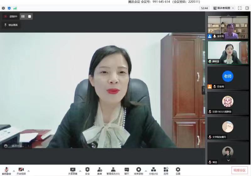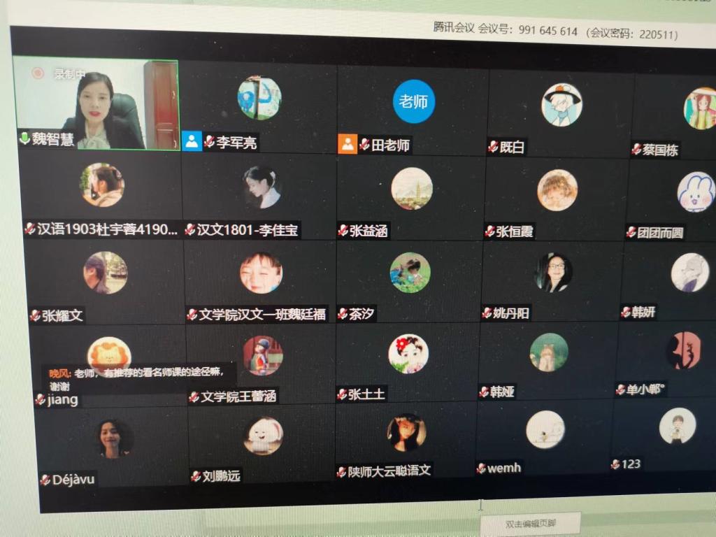 (通讯员:赵妤婕)2022年5月12日晚,公司特别邀请了商洛市第四届政协委员、陕西省学科带头人、陕西省优秀教师、陕西省教学能手魏智慧老师为公司师范生作专题讲座,题目为“核心素养视域下的个性化文本解读”,讲座以腾讯线上会议的形式进行,由9428cn太阳集团古天乐副教授李军亮老师主持、点评。