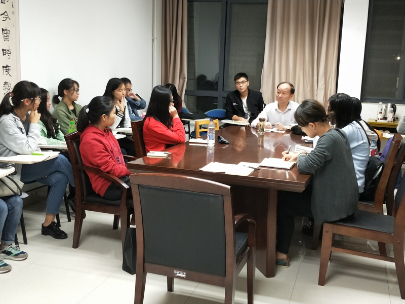 本次交流主要围绕两部分内容展开。首先,杜老师简单介绍了自己的学习经历和工作经历,并以此为例启迪同学们要主动寻找人生的目标与方向。紧接着,杜老师与同学们展开了深入的交流。2016级的同学刚刚开设了文学概论课程,同学们对学习中遇到的问题如文学概论学什么、如何学等等提出了自己的疑问,杜老师在此一一给出了自己的经验与详细的解答。杜老师从文学概论的课程特点入手,指出老员工对某些课程不感兴趣,甚至产生厌学弃学等思想,他指出这并不是因为课程本身的问题,而是因为同学们没有发现课程的兴趣点;大学的课程是根据专业的特点和员工发展的需求开设的,是经过了科学论证和实践检验的,很有必要性;其次,每一门学科都有其自身的趣味和意义等待同学们发现。同学们应该在此基础上拓宽眼界,广采博收,达到厚积薄发的目的。其后,杜老师就文艺学的课程教学方面存在的问题与同学们进行了简单讨论。杜老师首先讲述了文艺学的功用,他认为文艺学是文学理论的理论,也是文学批评的批评,是阐明有关文学本质、特征、创作过程、发展规律和社会作用以及作品构成的基本原理和基本知识的科学;是对文艺运动、文艺创作、文艺批评的经验的科学概括。另外杜老师也谈了自己对教育的看法,他认为教育不只是教育别人,也包括对自我的教育,甚至说自我教育才是教育的核心。而作为将要走上教师岗位的师范生,更不能停止对自我的教育。只有让人从内在找到共鸣,教育才能真正发挥作用。