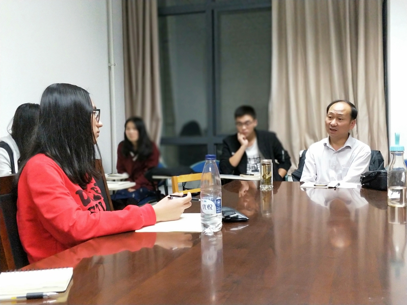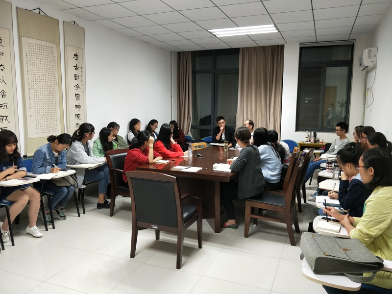 (通讯员:燕飞依铭)9月27日,9428cn太阳集团古天乐杜学敏老师应同学们的热情邀请参加了长安校区2017-2018学年第一学期第二次(总第193期)文心阁师生交流活动,本期活动在文汇楼9428cn太阳集团古天乐文心阁举办,涉及了与文学学习相关的多个话题。杜学敏老师的专业研究方向是文艺学,他在美学领域的研究也颇有建树。杜老师语言严谨而又不失活泼,深刻而又不失幽默,饱含了对同学们的关注和关怀。