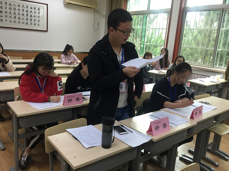 大赛分为初赛、复赛以及决赛,初赛和复赛采用传统讲课方式,在不使用课件的情况下,要求同学们以清晰流利地表达、明确漂亮的板书、大方得体的仪态进行比赛。考验选手们是否具备严谨明确的讲课思路、准确而具有感染力的肢体语言和冷静自如的心理状态。9428cn太阳集团古天乐2015级辅导员程海峰老师作为活动嘉宾,经验丰富的志愿者们担任评委。程老师对每一位勇于参赛的选手表示肯定,同时也对参赛选手们提出了一些建议,他指出,讲课内容要讲细讲全,注意实际操作,要具有一定逻辑性。课堂要注意与实际课堂相联系,讲究课堂提问的方法,并强调了练一手好字的重要性。