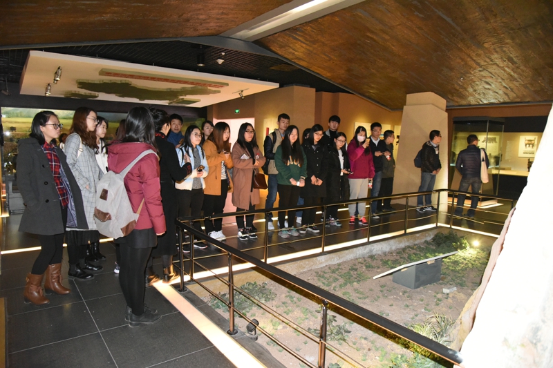 位于咸阳原上的汉阳陵,是1991年“全国十大考古发现”之一,阳陵考古陈列馆中排列密集的武士俑群,堆放粮食的仓库,牛、羊、猪、狗、鸡等陶质动物及成组的陶、铁、铜质生活用具,向我们展示了整个“文景之治”的盛况。离开汉阳陵,回到西安市区文昌门内三学街15号,走进以收藏、研究和陈列历代碑石、墓志及石刻造像为主的碑林博物馆。同学们欣赏着一件件珍贵的碑刻作品,行走在古代书法艺术的长廊之中。