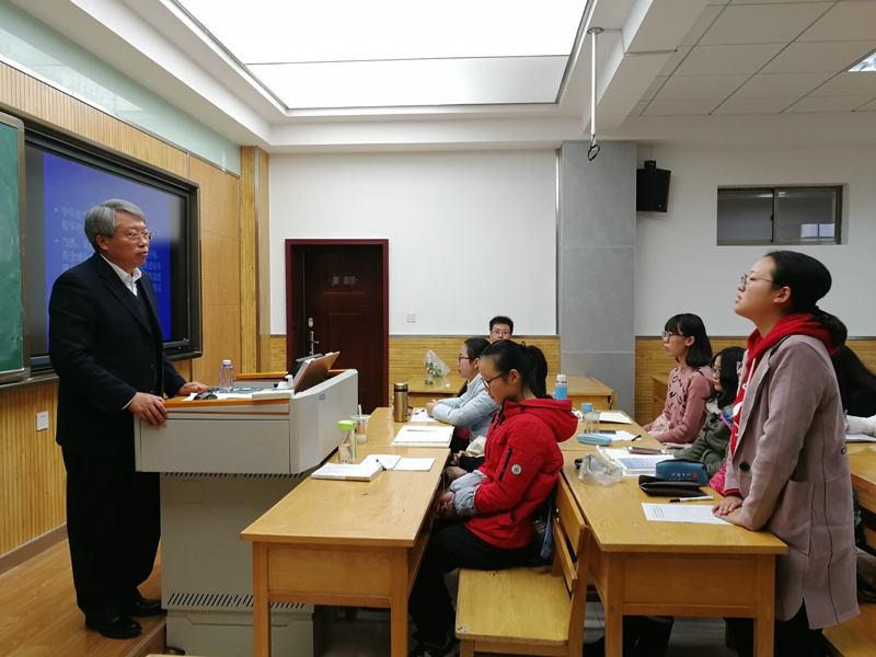 首先,景教授从“天下太平始于个人修身”的角度,引用《中庸》、《孟子》等儒家经典中的名言,说明古人对于修身的重视程度。并结合现实讨论了“大学之道,在明明德,在亲民,在止于至善。”的重大意义及其实现途径“格物致知、诚意正心、修身齐家、治国平天下”的具体表现。其次,又从“守身为大与修己以安百姓”的角度进一步深化同学们对修身目的的认识。景教授指出,修身的目的不仅在于个人修为,立于天地,还在于孝亲安民,刚健有为。接着,针对“修身与君子之道”,景教授从“忧道不忧贫”、“淡泊明志”、“心有敬畏,慎独慎微”三个角度,充分阐述了修身与君子之道间的联系,并告诫同学们要树立远大理想,时刻自律,静下心来全神贯注地修习,实现宏伟的人生目标。