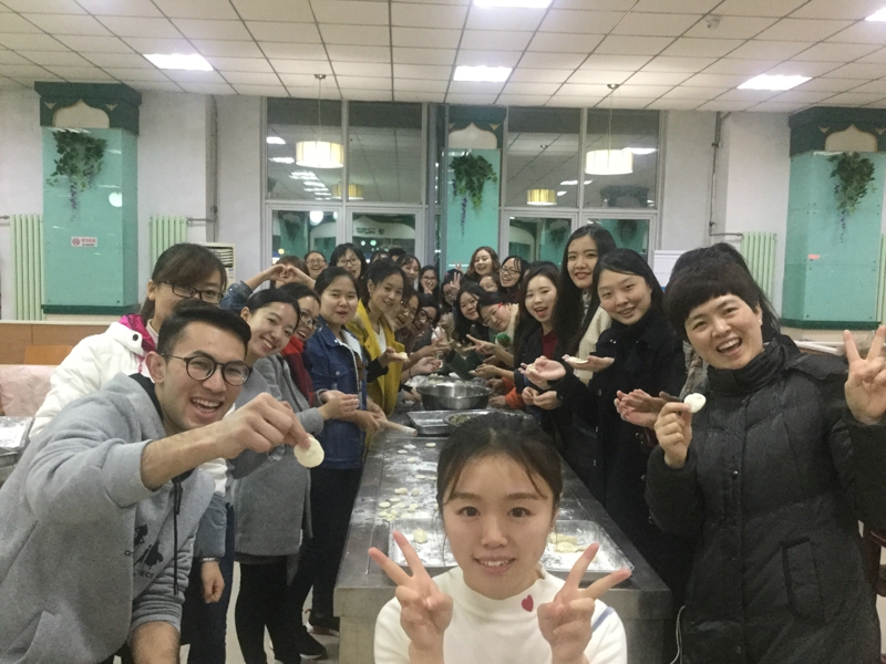 “非常感谢大家能积极参加此次活动,希望在这样一个难得的日子里,一碗暖暖的饺子能温暖寒冬,温暖在座的每一个人。”公司党委副书记李斐老师的一番话博得了在场同学们的阵阵掌声。随后,活动在欢声笑语中开始了。同学们你揉面团,我擀面皮,相互配合,体验着包饺子的乐趣。组织活动的海燕同学和阿卜杜拉同学更是跑前跑后为大家联系各种材料和工具。大家一边包饺子一边交流着各民族的文化习俗,气氛十分融洽。公司副书记李斐老师和辅导员秦亚坤老师也热情地参与其中。