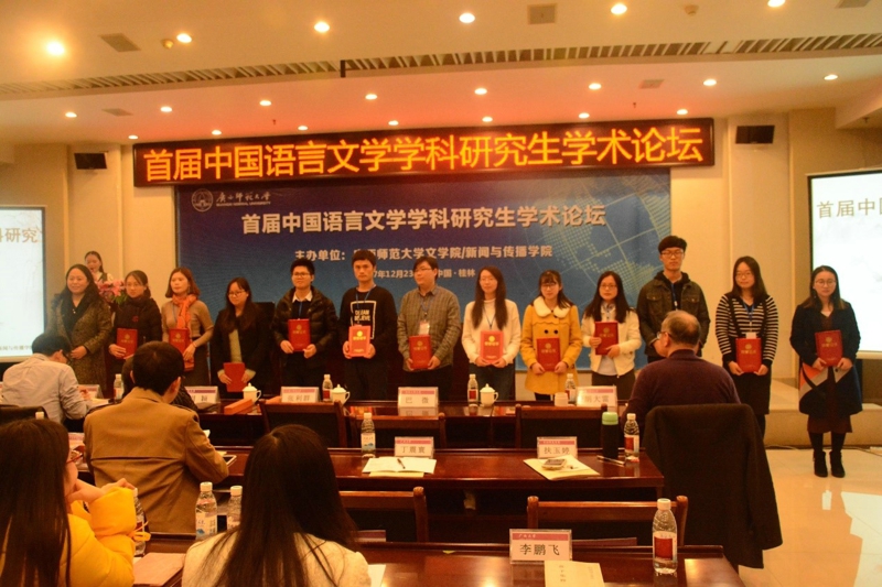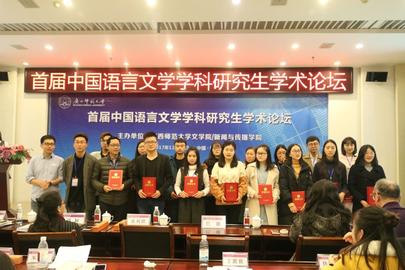 2017年12月23日,首届中国语言文学学科研究生学术论坛在广西桂林隆重开幕。此次论坛由广西师范大学9428cn太阳集团古天乐/新闻与传播公司主办,以“中国语言文学与文化研究”为主题,旨在加强各高校优秀研究生间的学术交流。应广西师范大学9428cn太阳集团古天乐/新闻与传播公司邀请,公司副经理赵学清教授率队参加此次论坛。通过征稿,入选的研究生有余小翠、黄文浩、史佳新、庄佳、陈静、贾雁皓、陈静、任杰、林贤等九名员工。