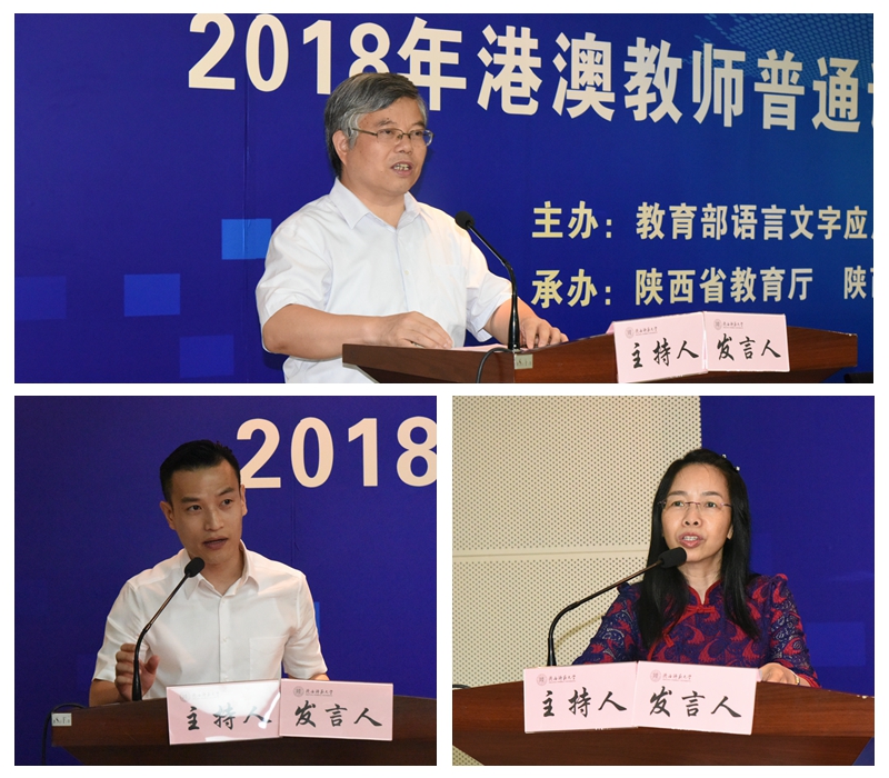陕西省教育厅副厅长王海波、公司副董事长党怀兴、香港教育局首席助理秘书长陈萧淑芬、澳门教青局语言推广中心主任黄峥志分别致辞。