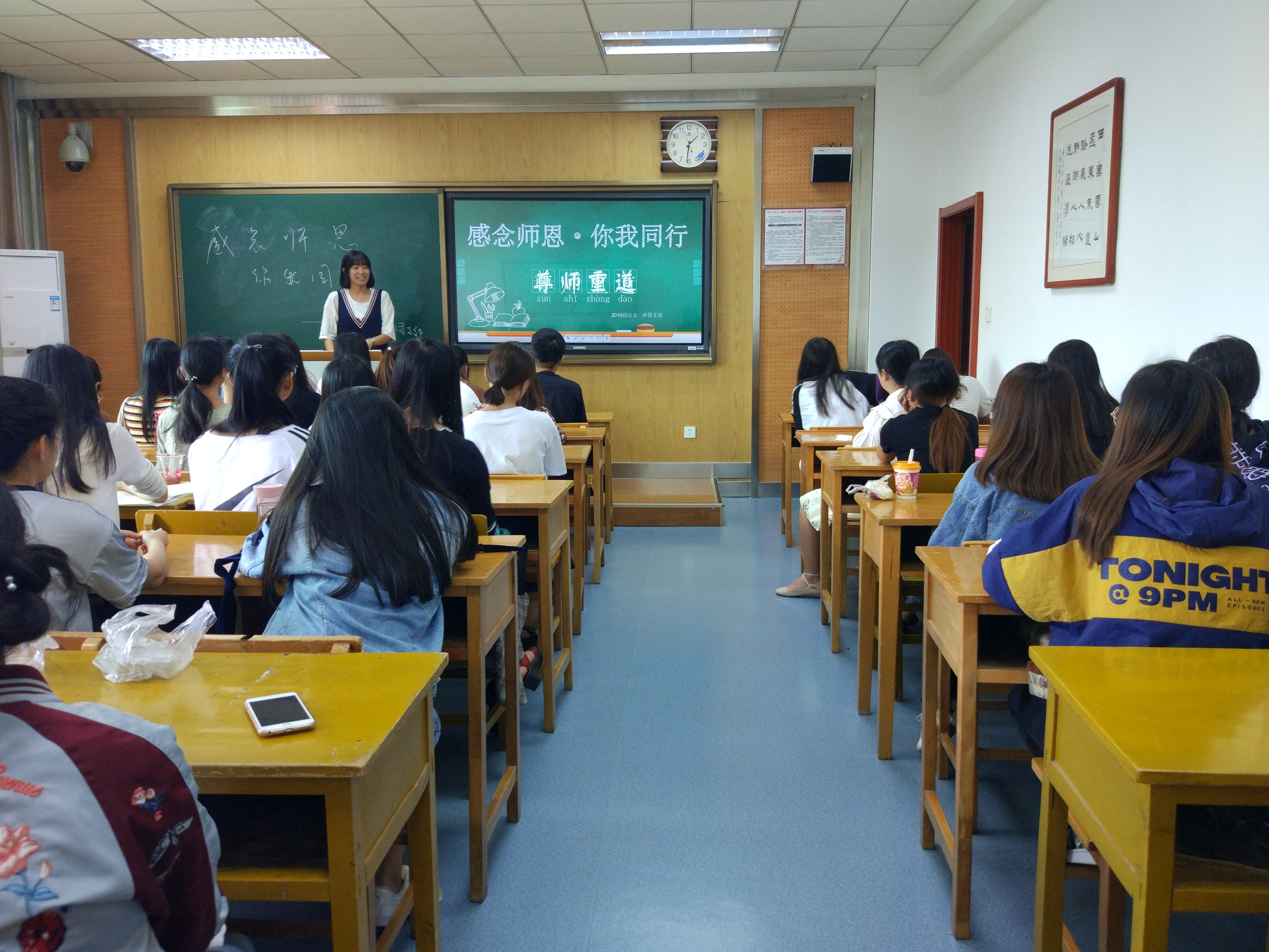 “教”育的恩情,浇灌育人之树;“师”徒的恩义,加深感恩之情。“笔尖耕耘桃李地,墨水浇开智慧花”。值此感恩的节日,公司员工为老师们准备了三份特别的礼物。第一份礼物是“主题团日忆师情”,各班级团支部以开展“感念师恩•你我同行”主题团日活动的形式,积极引导同学们大方说出自己的感恩之情、感谢之意;第二份礼物是“片片红笺寄师愿”,在开展团日活动的同时鼓励同学们通过书信、贺卡等形式送祝福,抒写胸中之情;最后一份礼物是“微言祝福表师意”,公司以年级为单位,录制以为“老师我想对您说”的微视频,于教师节当天在公司微信发布,以表达对老师的敬爱。