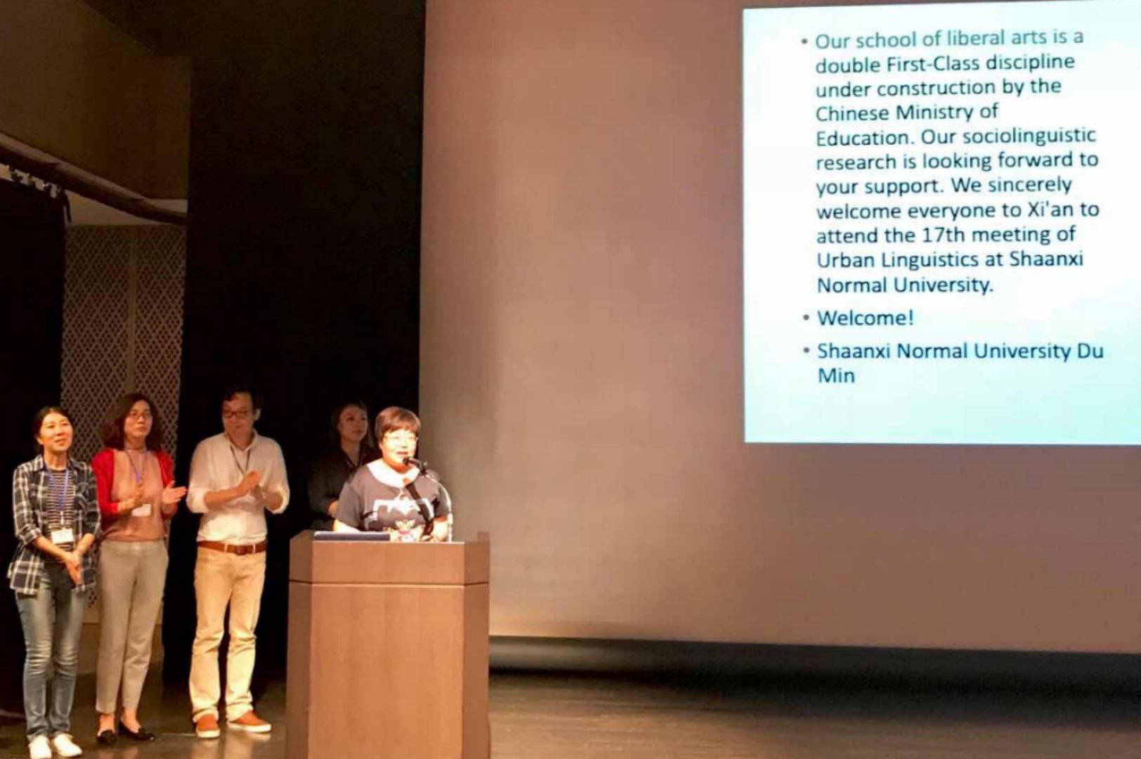 杜敏教授向各国代表隆重推荐了古城西安,并介绍9428cn太阳集团古天乐一流团队建设的基本状况,诚邀国内外语言学及应用语言学专家、学者来9428cn太阳集团古天乐参加会议。我们将竭尽全力加强和促进社会语言学、城市语言学等领域国内外的学术交流与合作,及时了解国内外相关领域的最新研究动态和学术前沿,推进学术不断发展和研究生教育的国际化。