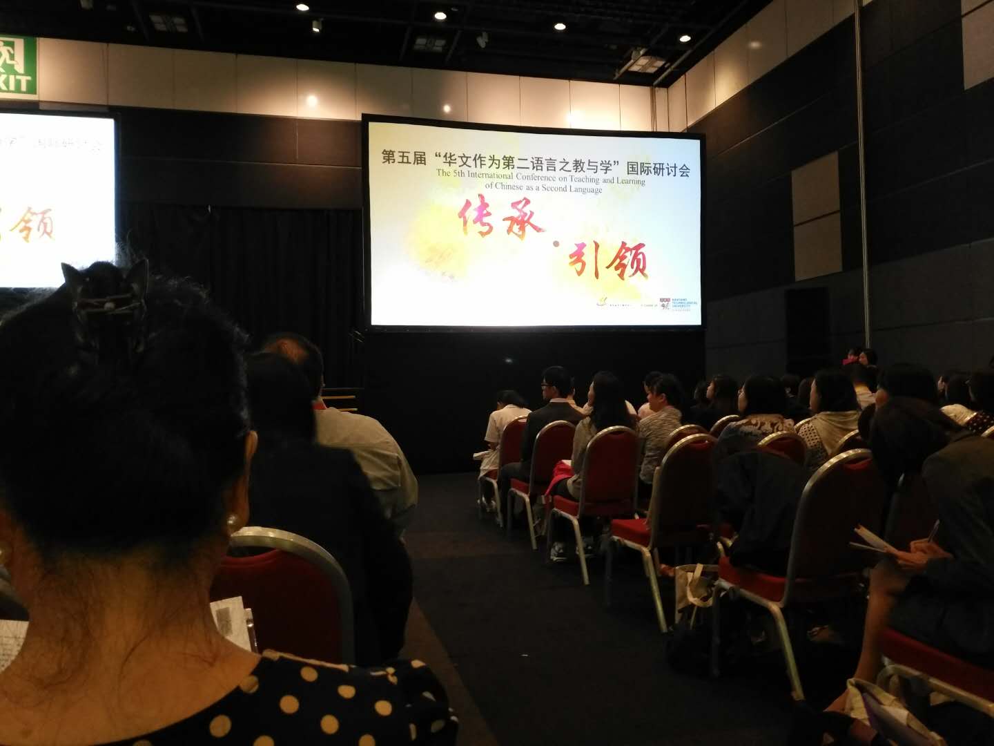 第五届“华文作为第二语言之教与学”国际研讨会由新加坡教育部主办,新加坡华文教研中心承办。该论坛在世界华语圈有着广泛的影响。本次大会有1000多名来自世界各地的参会者,大会主题是“传承·引领”。大会开幕式上新加坡教育部长王乙康先生致辞。来自剑桥大学、哈佛大学、香港中文大学、新加坡南洋理工大学等大学的5位专家做了关于华文教育意义与未来发展的主宾发言。大会还进行了为期一天半的分论坛讲座。贺卫东老师主持了分论坛,并在分论坛上对自己的论文《2017年台湾高考命题评述》进行了演讲。演讲深受与会者好评,会后诸多学者与贺老师进行了深入的交流,并希望能够在更大更高层面上的交往。