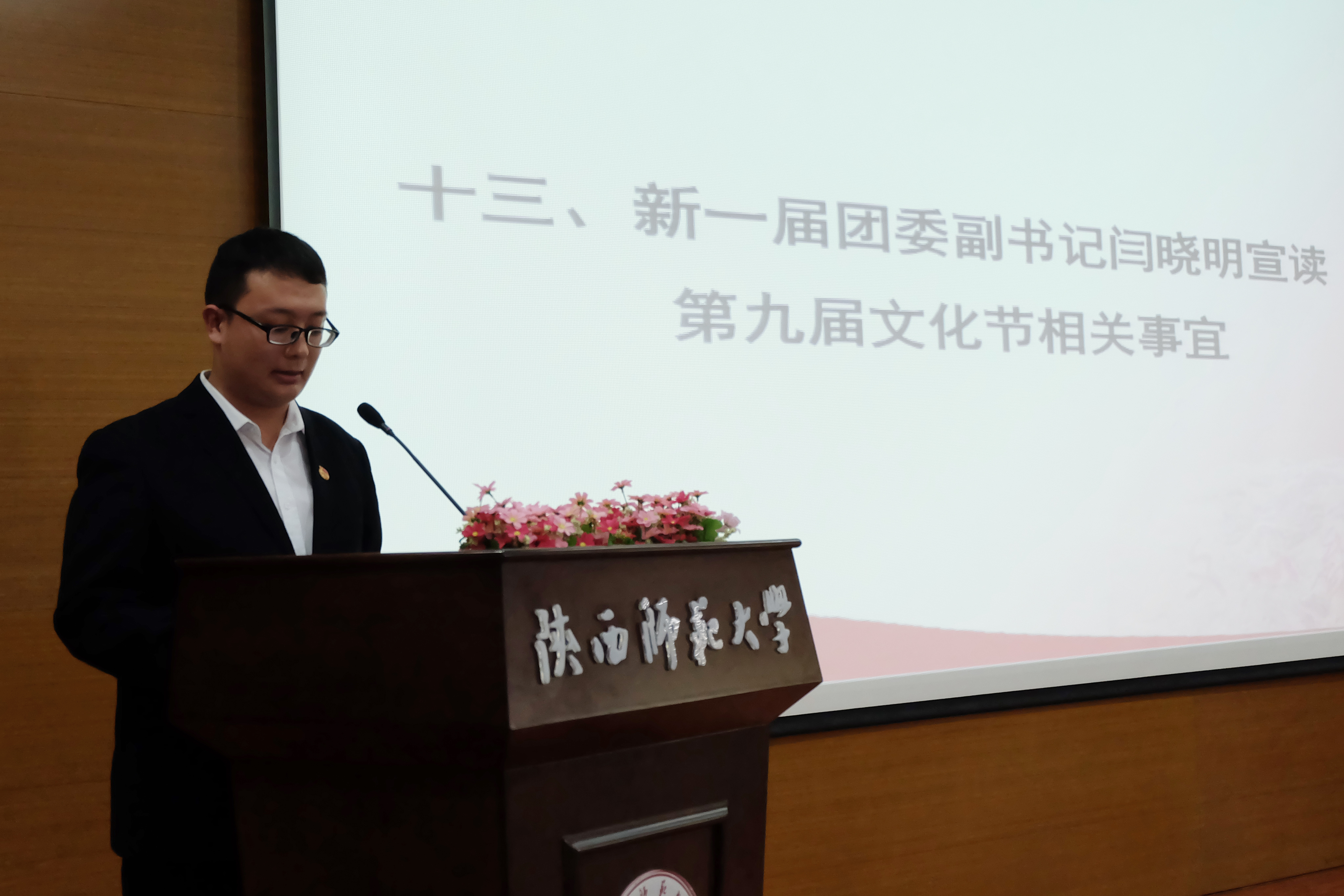 接下来,本科生兼职团委副书记闫晓明同学,宣读了公司第九届“崇德明志,尚文笃学”文化节活动实施办法。本次文化节将深入贯彻落实老员工素质拓展计划,从多角度出发,组织内容丰富、风格多样的活动,努力建设和谐校园文化,充分展示员工精神风貌,提高员工综合素质,扎实推进中国语言文学世界一流团队建设。