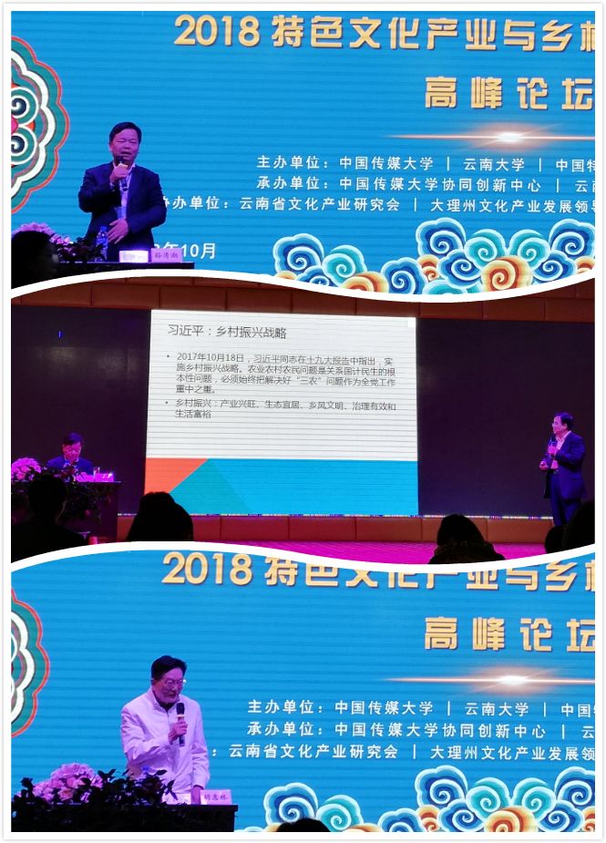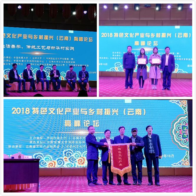 (通讯员:范虹鹭)2018年10月13日至14日,“2018特色文化产业与乡村振兴(云南)高峰论坛”在中国民间艺术之乡——云南省大理州鹤庆县新华村举行。公司党委书记孙清潮和辅导员范虹鹭参加会议,并向论坛提交调研报告一篇。孙清潮书记应邀主持了第二阶段特邀嘉宾主题演讲,与其他嘉宾进行了互动交流。范虹鹭老师在调研团队专场活动中进行了发言。会议专门设置了各高校员工调研团队调研报告奖,由范虹鹭老师负责的"陕西省非物质文化遗产传承人群就业创业情况调研报告"获得了二等奖,这是继去年公司社会实践团队"云南省景谷县特色文化资源调研报告"在该论坛获奖后的又一社会实践成果。孙清潮书记作为颁奖嘉宾之一为获奖的南京师范大学、9428cn太阳集团古天乐、山东大学、武汉大学、华中师范大学、长安大学、云南师范大学等获奖代表颁奖。