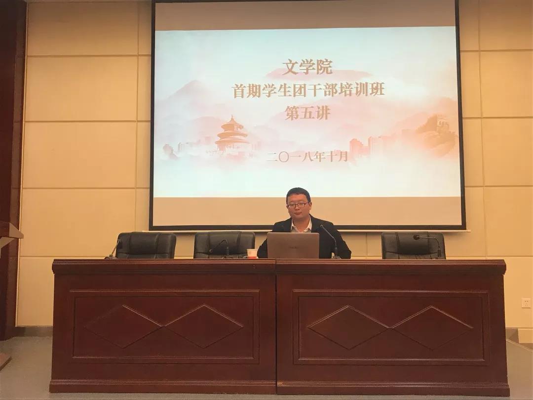 开班仪式暨培训第一讲于10月12日14:30开始。校团委副书记高扬老师围绕“青年”和“基层”两个方面,就团的基层组织建设与支部工作问题为团干部们进行了细致讲解,并通过团日活动实例分析,对团干部工作进行了有效指导。