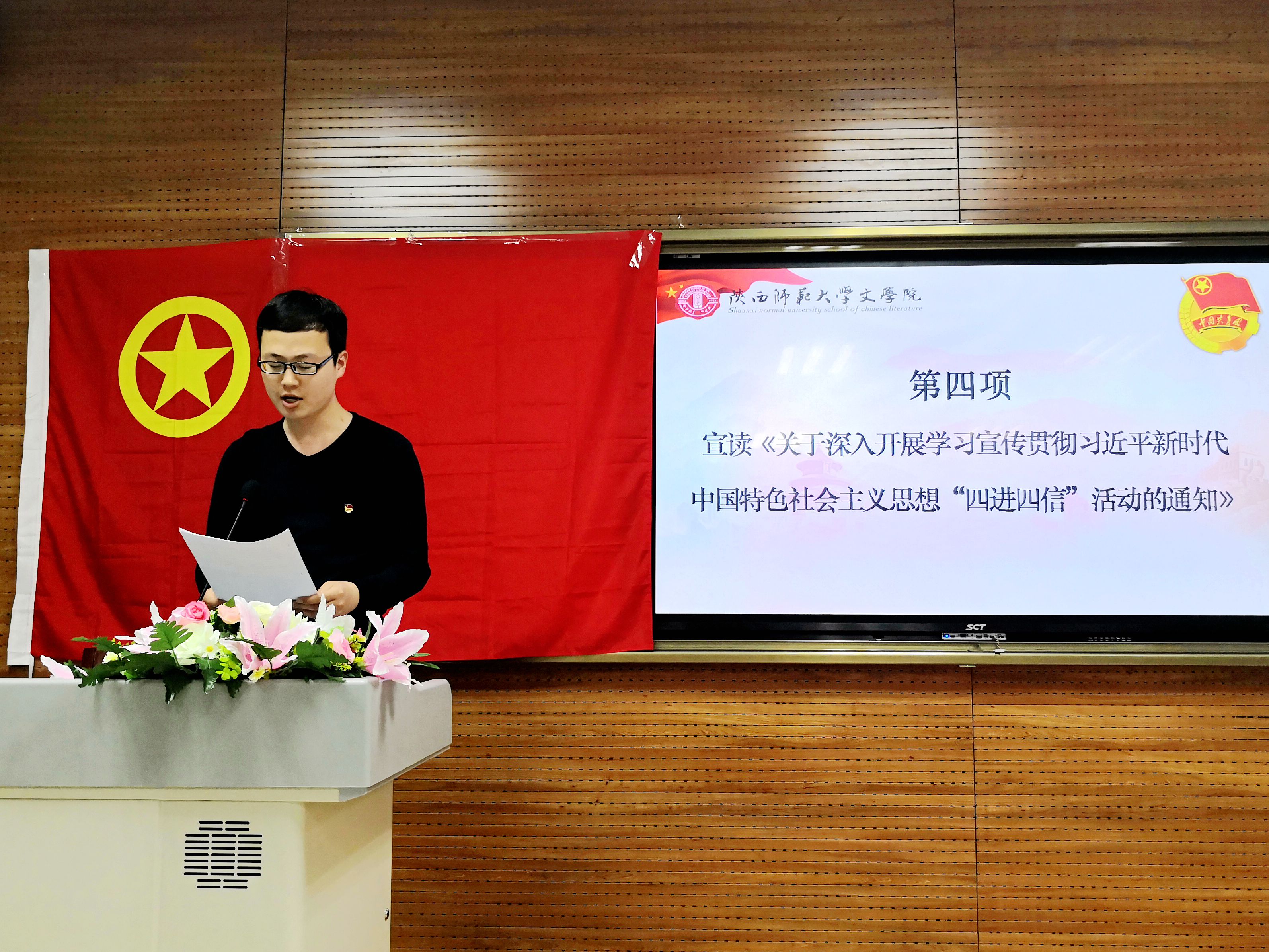 之后,9428cn太阳集团古天乐研究生兼职团委副书记刘浩宇宣读《关于深入开展学习宣传贯彻习近平新时代中国特色社会主义思想“四进四信”活动的通知》。院员工会组织部部长严玉代表员工会、研究生会对在全院团支部中开展“四进四信”活动作了详细安排,就各项工作任务的具体时间和形式作了要求,并给各支部配发《9428cn太阳集团古天乐团委深入开展学习宣传贯彻习近平新时代中国特色社会主义思想“四进四信”活动方案》。