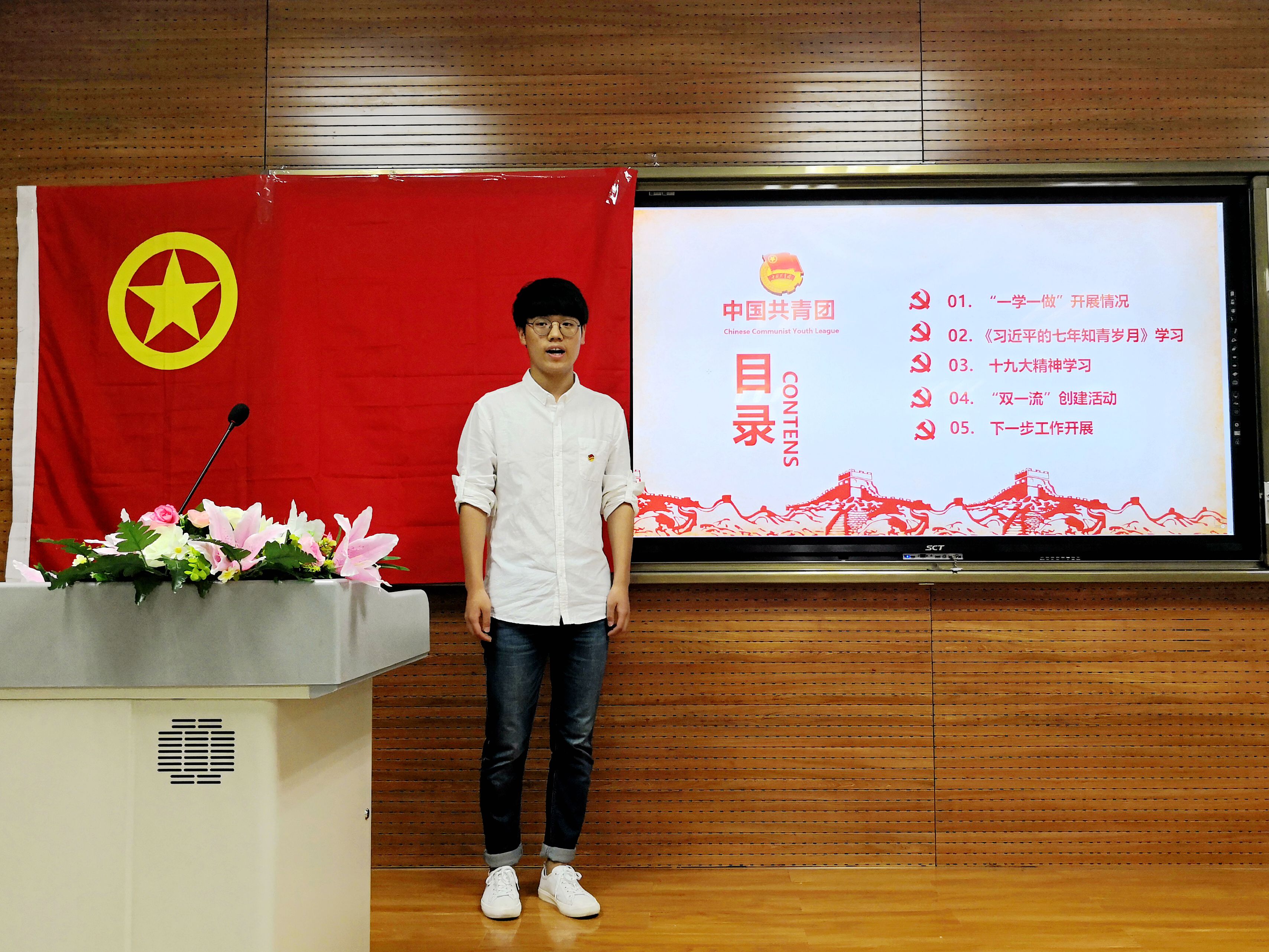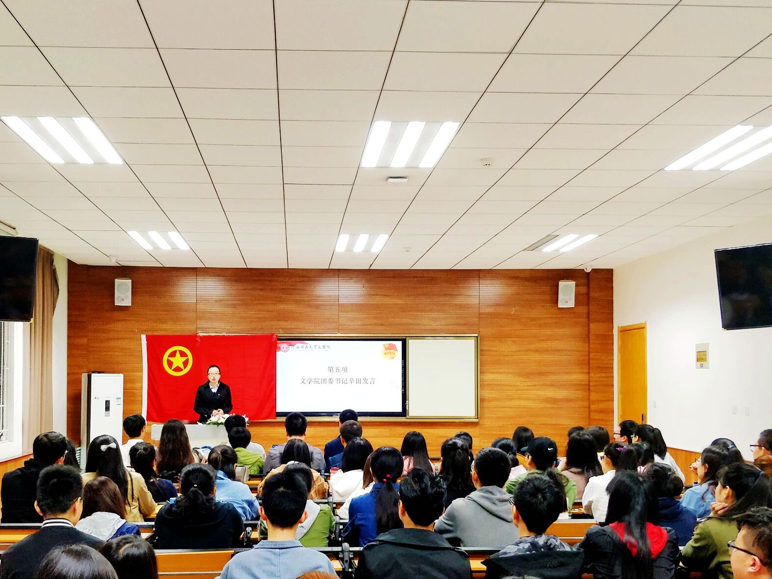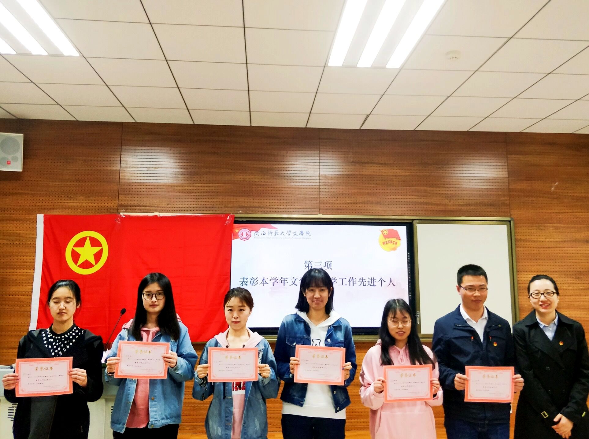 会议伊始,全体起立奏唱团歌。9428cn太阳集团古天乐本科生兼职团委副书记崔铁成作本学年上学期共青团工作回顾总结报告,汇报了院团委“学总书记讲话 做合格团员”教育实践开展情况、《习近平的七年知青岁月》学习分享活动、“十九大”精神学习、围绕“一流学科”建设员工组织作用发挥等四个方面的工作。接着,院团委对本学年团学工作先进个人进行了表彰,院团委书记辛田为6位表现突出的团干部颁发奖状。