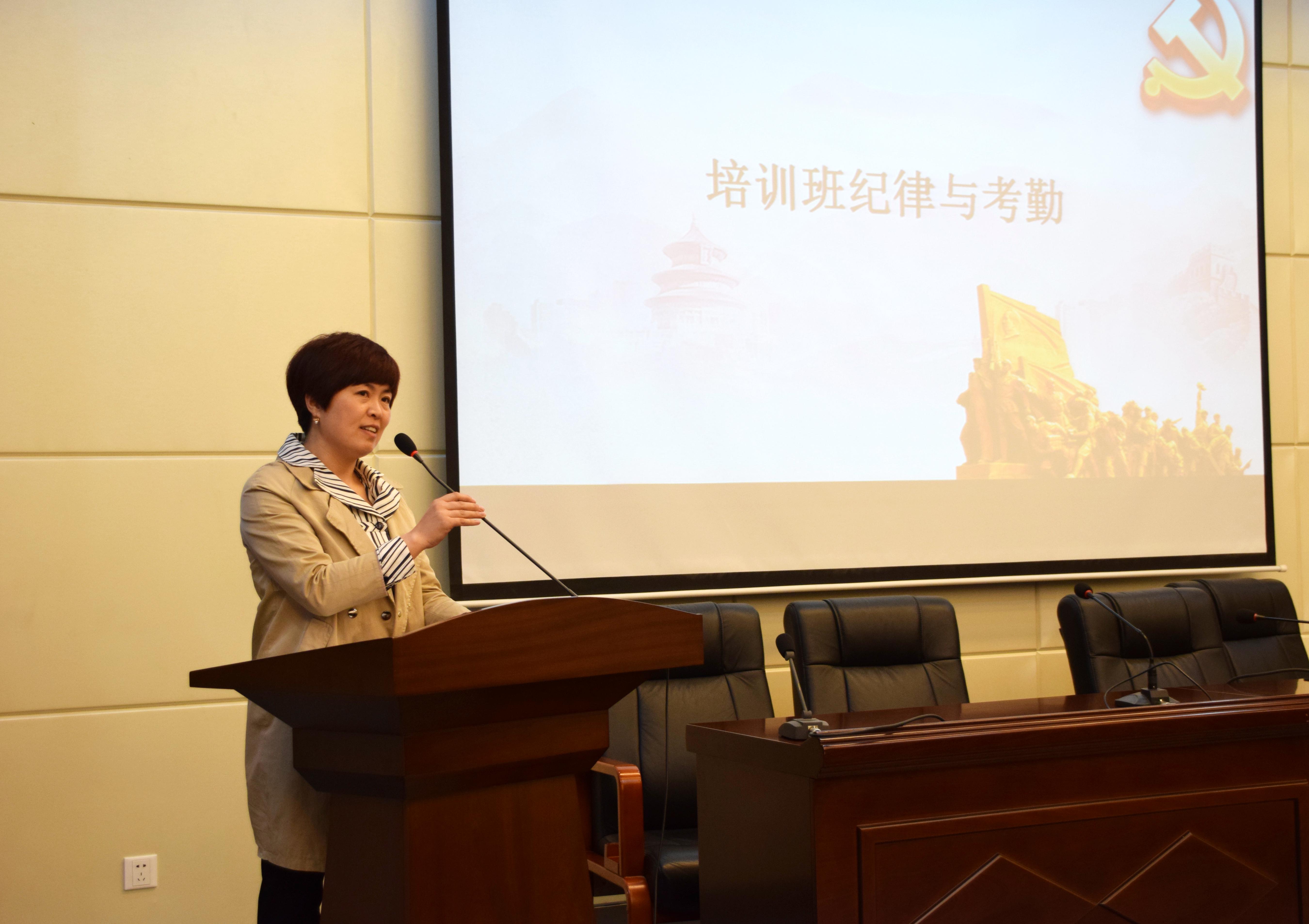 庄严的《国际歌》奏响,辛田宣读本期学员名单和分组。2016级汉语言文学卓越班韩佳萍同学作为学员代表发言,她表示要珍惜培训机会,坚定理想信念,知行合一,坚持自省,争做合格党员。李斐对培训的纪律和考勤作以要求,希望全体学员严格遵守纪律,认真听讲,做好笔记,严肃对待结业考试,坚定入党信念,切实提高党性修养。孙清潮在致辞中,对本次入党积极分子党课培训开班表示祝贺,希望同学们按照党员八条标准严格要求自己,用实际行动为党课培训交出满意的答卷。