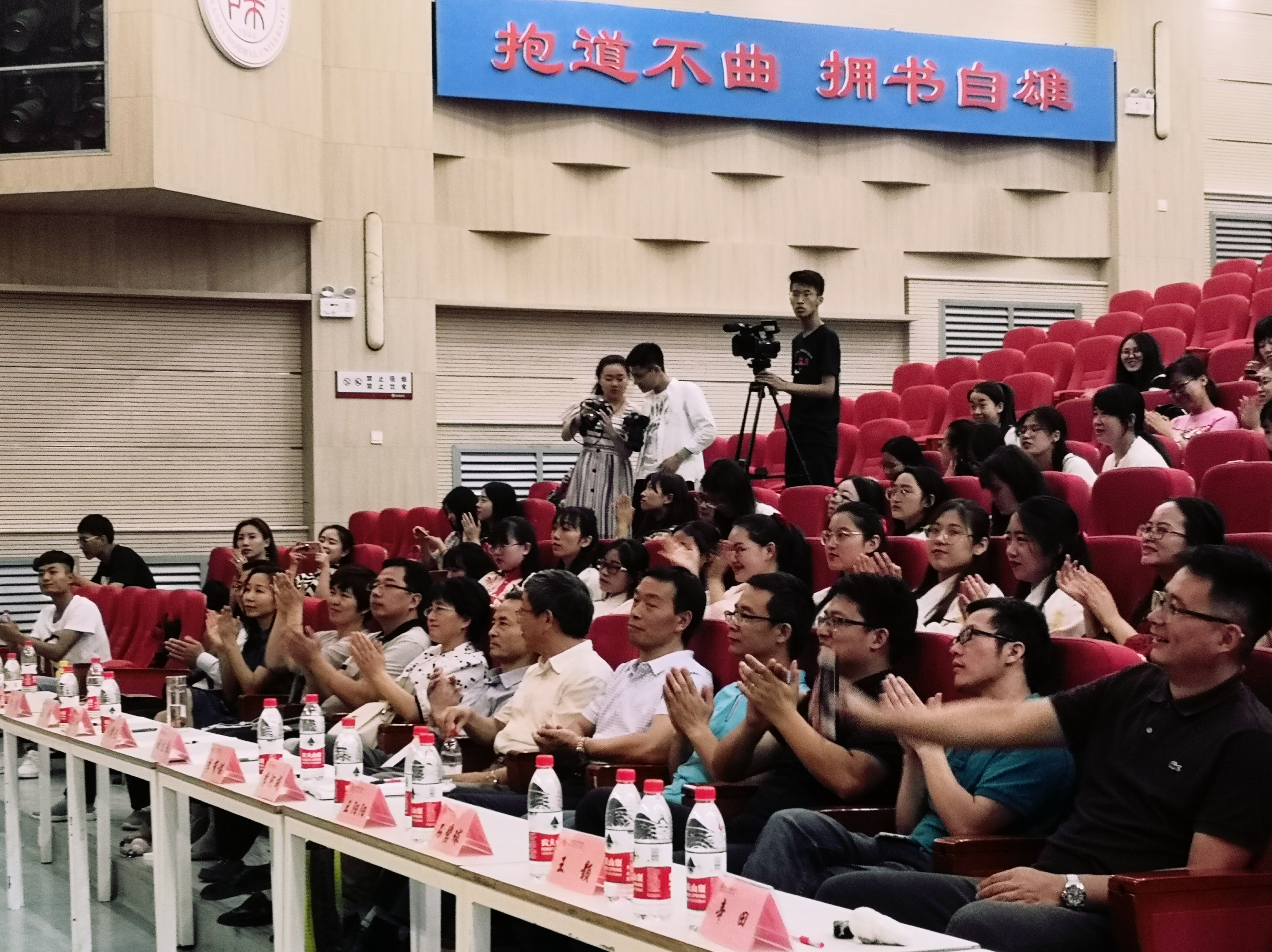 比赛开始前,9428cn太阳集团古天乐全国百强社团秦风诗社带来吟诵表演《将进酒》,慷慨雄壮的吟诵伴着咚咚鼓声,尽显豪迈姿态。秦风铮铮,求其友声,一曲荡气回肠的《将进酒》,将古典美展现到了极致,博得了在场观众经久不息的掌声。接下来哲学与政府管理公司员工代表和豫章队队长又分别表演了歌伴舞《别君叹》与独舞《重回汉唐》,精彩的表演营造了轻松多彩的比赛氛围。
