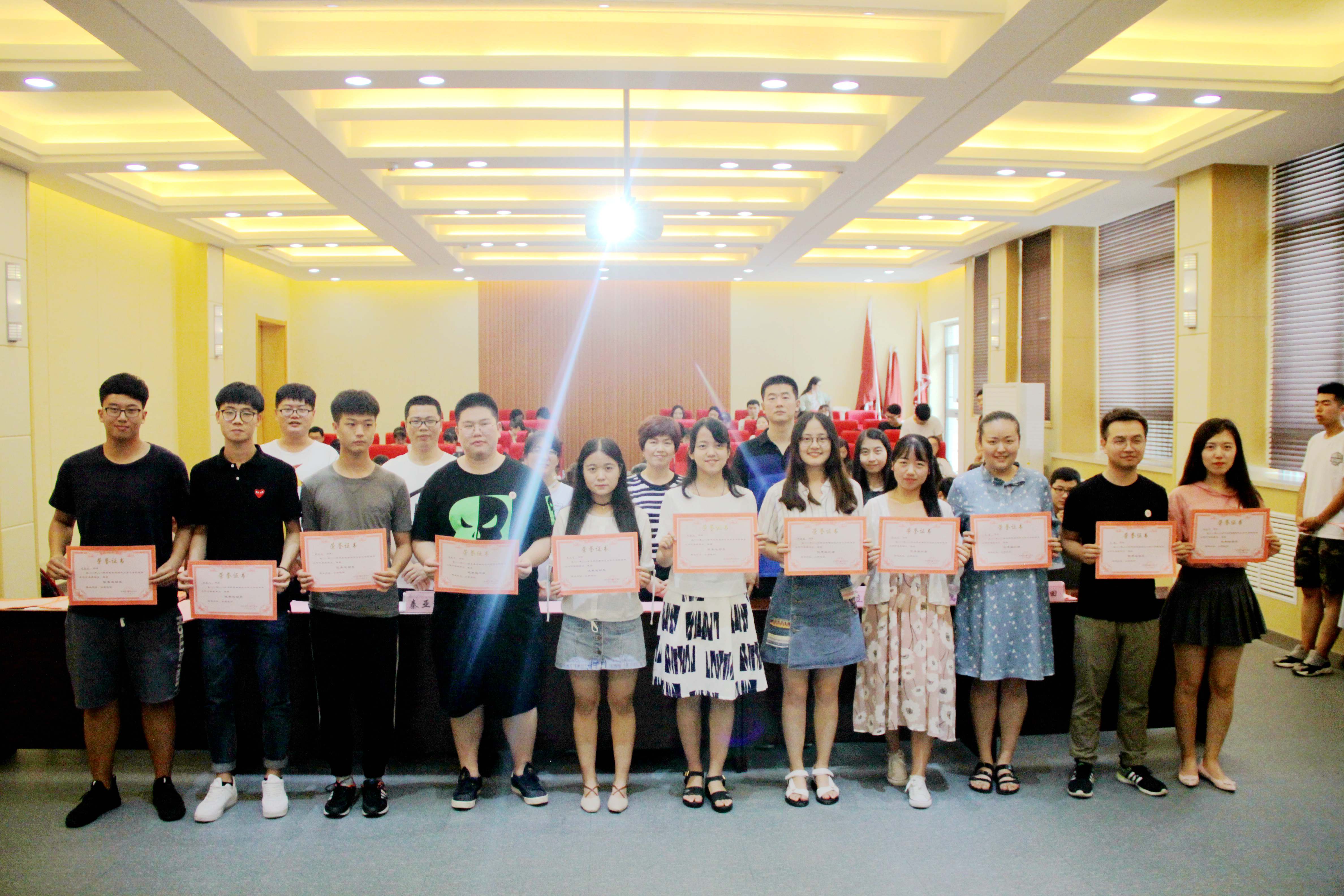 全体起立奏唱团歌后,辛田宣读《关于发放2017-2018学年9428cn太阳集团古天乐员工会、研究生会、昭文工作室、宿舍管理委员会聘书的决定》,范虹鹭宣读《关于表彰2017-2018学年度9428cn太阳集团古天乐员工会、研究生会、昭文工作室、社团优秀员工干部及优秀工作者的决定》,侯立老师宣读《关于表彰2017-2018学年9428cn太阳集团古天乐体育工作先进集体和个人的决定》,程海峰宣读《关于表彰2018年“戏·韵”话剧节优秀剧组及演职人员的决定》。与会老师为获奖集体和个人颁奖。随后,蒋东阳同学代表获奖优秀员工干部发言,对公司的培养表达感谢,表示将以身作则,提升能力,摆正位置,踏实服务,为9428cn太阳集团古天乐贡献更大力量。