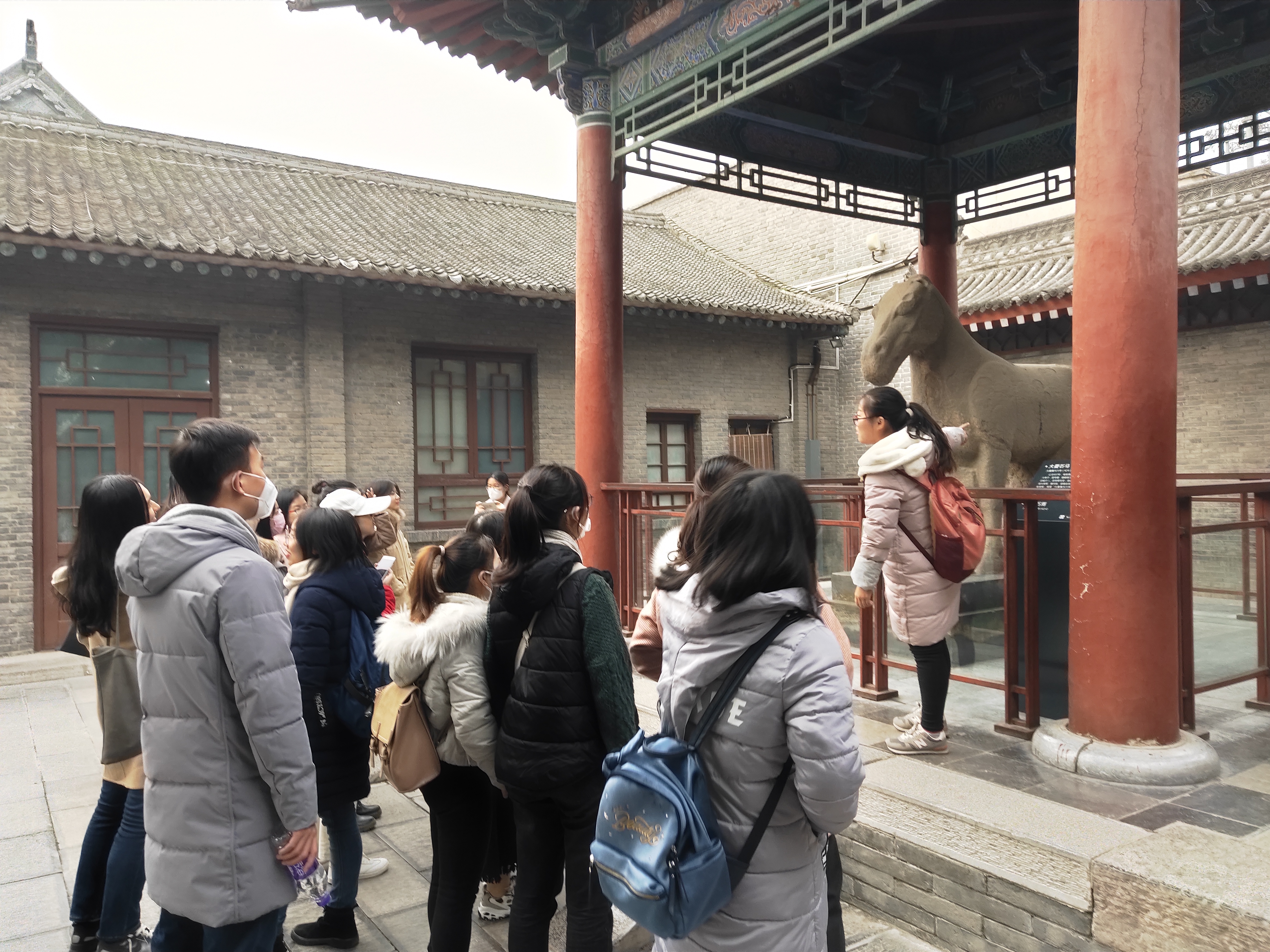当日上午,全体师生前往西安碑林博物馆,对馆藏的从汉至清的碑石进行了调研学习。通过对碑文的文体及内容的学习,大家对历代文书的档案风貌、历史意义有了更为生动的了解,并在参观馆藏的汉代画像石和石刻造像艺术后,对中国古代政治构架和官吏制度有了进一步的认识。