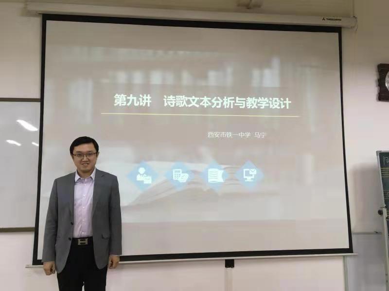 本次“‘文心’语文名师大讲堂”第六讲邀请了西安市铁一中高级教师、陕西省教学能手、西安市骨干教师马宁老师主讲。本讲主题为“诗歌文本分析与教学设计”。马宁老师认为诗歌教学要注重提高员工的学习境界,需要通过教师精心设计实用的课堂教学去实现。