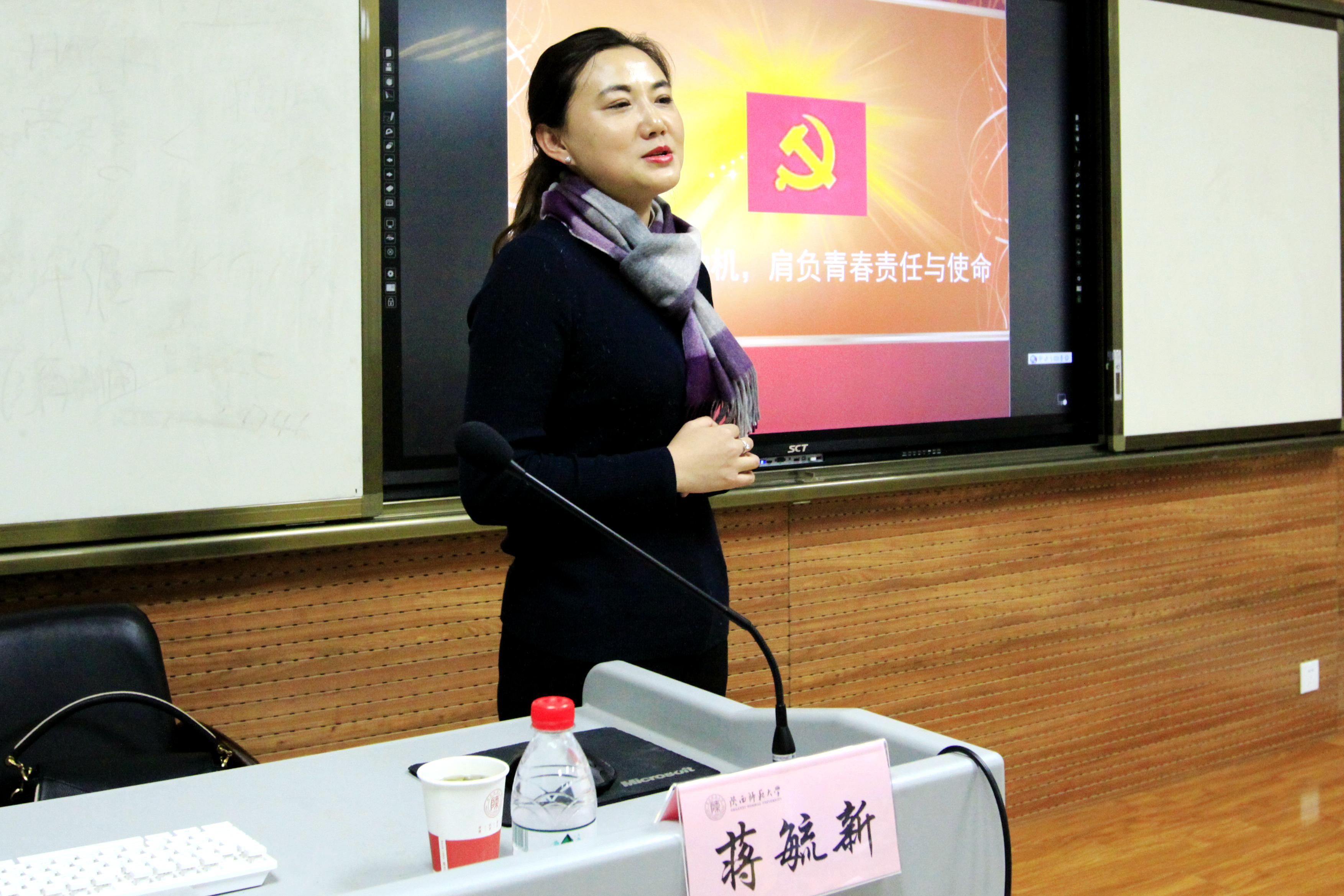 11月28日,党委组织部贾颖辉老师作“党的性质、宗旨和任务”报告,对什么是中国共产党、为什么要入党、怎样入党、如何做一名合格党员的问题作了详细讲解。