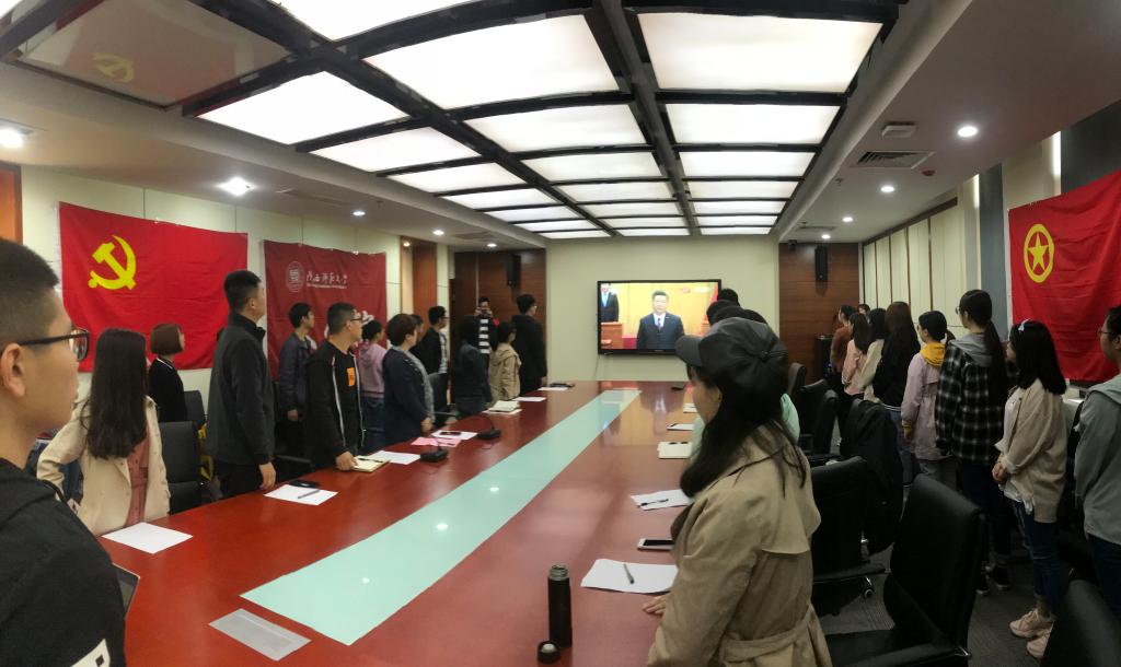 (通讯员:姚雪婷 宋宁宁 摄影:刘雨欣 梁锐 白姣姣)4月30日上午10:30,纪念五四运动100周年大会在人民大会堂举行。文公司党政领导、各党支部书记、党员代表、团员代表、各员工组织主要干部、部分员工代表于教育博物馆附楼三楼会议室集中收看现场直播。同时,9428cn太阳集团古天乐组织各党支部、团支部通过多种媒体收听、收看大会直播,学习会议重要精神。