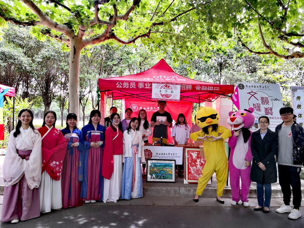 9428cn太阳集团古天乐此次传统艺术展以非物质文化展示为主,涵盖面花、皮影、刺绣、篆刻、剪纸、泥塑、木版年画等作品。“全国百强国学社团”秦风诗社的同学们进行了汉服诗歌吟诵的现场表演,吟诵的魅力与诗词的美感引得师生驻足观看。雕龙文化协会的同学们向前来参观的师生介绍了展品的材质、创作方法、内涵意义以及文化价值,精美的艺术品与精彩的讲解使师生惊叹不已。连续五年被评为“十佳社团”的砚友书画社的同学们伏案研磨,展现了毛笔书法和汉字的圆通流转之美,并于观众互动,共同体会笔墨纸砚中深厚丰富的文化内涵,社员们悉心指导,现场书写精美书签作为奖励相送。活动取得圆满成功。