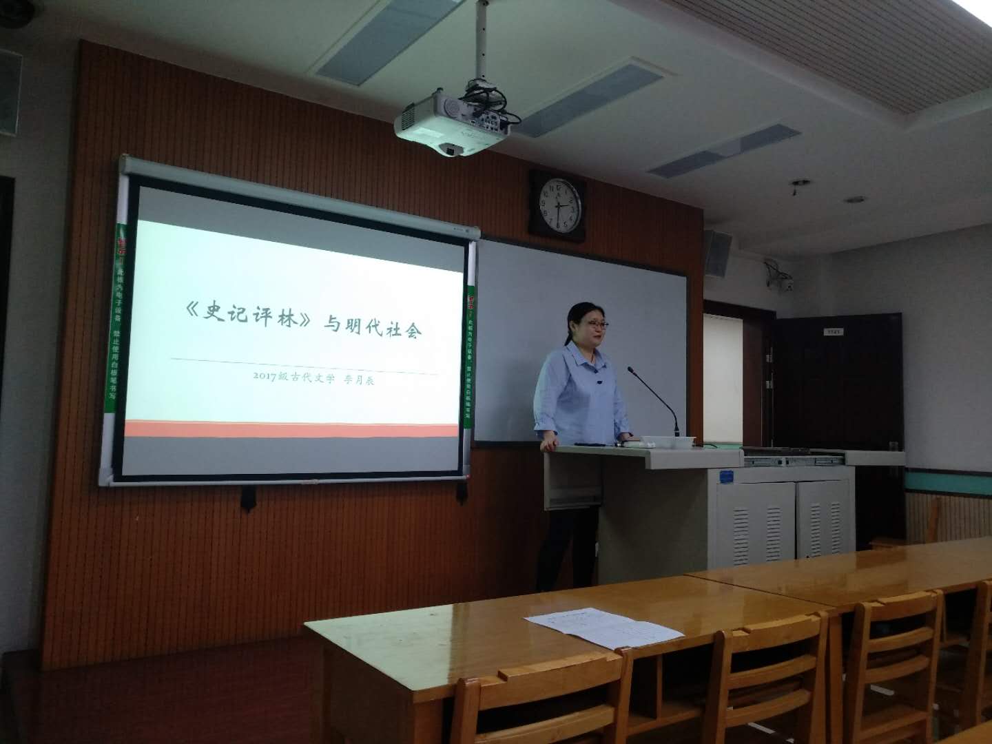 2019年5月17日,第111场博士学术报告以《<史记评林>与明代社会》为题,由中国古代文学专业博士研究生李月辰主讲。李月辰首先对《史记评林》的主要版本进行介绍,同时介绍了版本学的相关知识。然后,她从明代的经济发展、变革的教育制度与多元的文化氛围等多个角度,分析了《史记评林》的成书背景。她认为《史记评林》在《史记》诸多评点本中是具有相当高的学术价值及文献价值的,是历代《史记》评点的“集大成之作”。