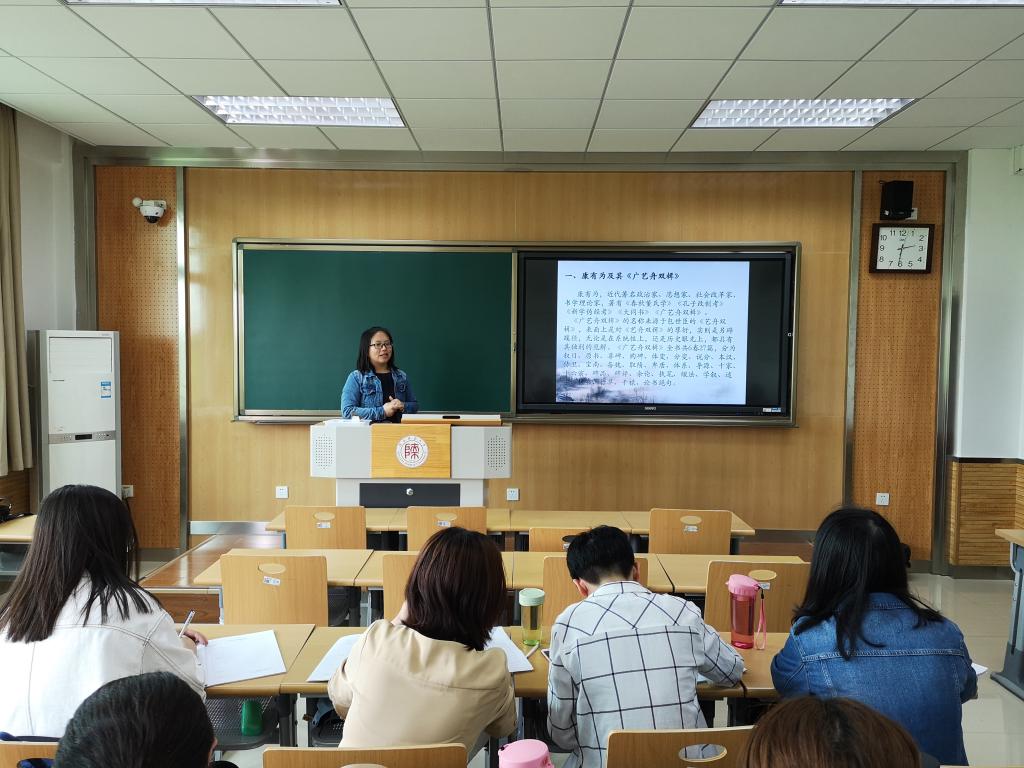 2019年5月13日,第106场博士学术报告以《法古求新·以西汇中——康有为的书法革新思想论析》为题,由文艺学专业博士研究生李雪莉主讲。首先,李雪莉简要介绍了集中体现康有为思想的著作《广艺舟双楫》。接着,介绍了碑学与帖学的相关知识。最后,重点阐述康有为“法古通变”、“追新求异”的书法批评观,并指出其价值与局限。李雪莉还在报告中跟大家分享了论文成形的经验,同学们受益匪浅。
