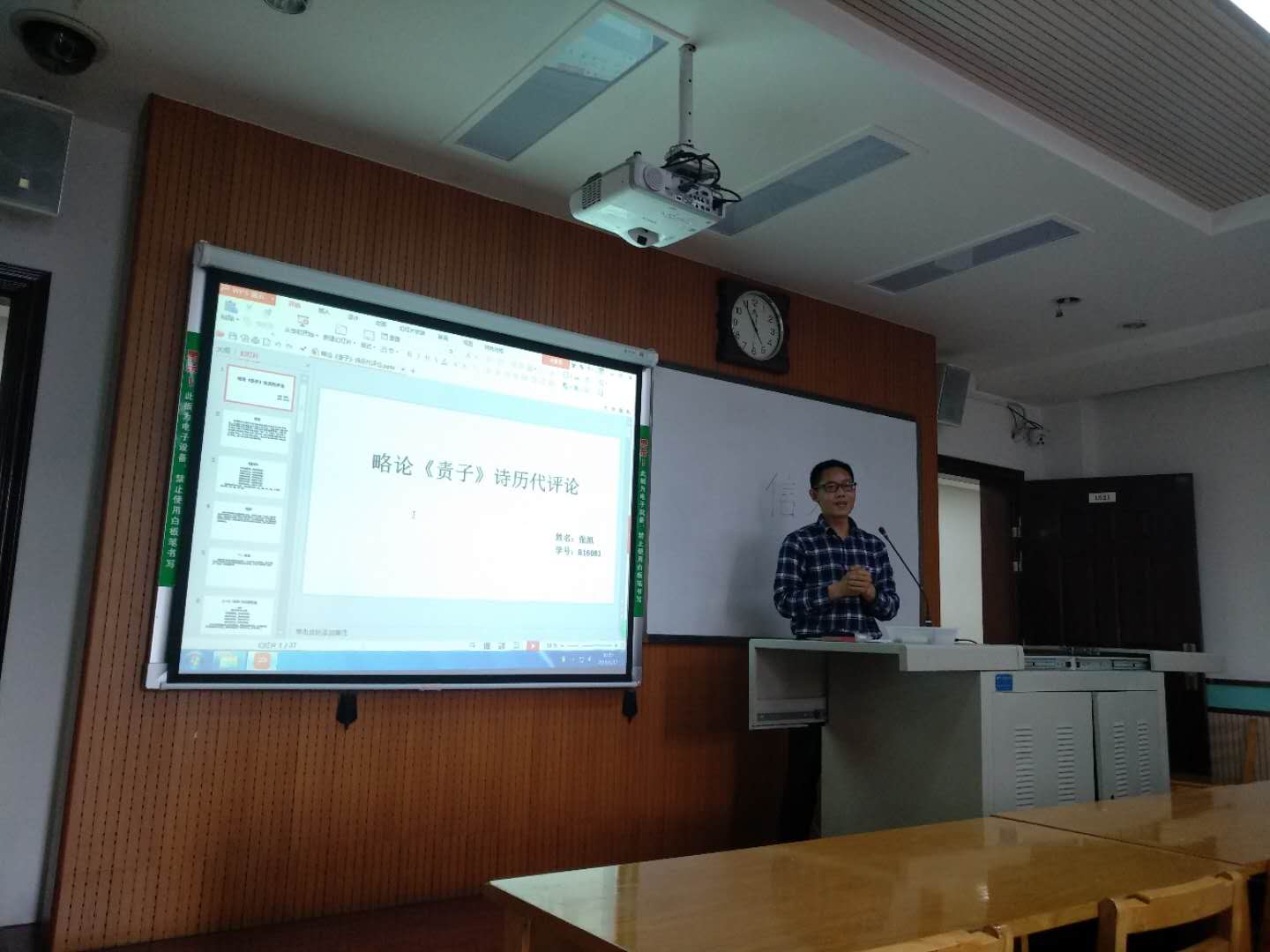 第114场博士学术报告以《略论<责子>诗历代评论》为题,由中国古代文学专业博士研究生张旭主讲。陶渊明是我国古代著名的诗人、文学家,他曾经写过许多著名的田园诗,除此之外,他的《责子》诗也相当有影响力,历代文人都曾对此诗做出评论。张旭通过梳理杜甫、苏轼等人对《责子》诗的评论,提炼出历代评论的分歧主要在于陶渊明是否“达道”。对此,张旭认为应该综合儒释道三教思想来审视陶渊明思想,《责子》一诗有很大的阐释范围,不应仅仅以“达道”与“不达”来简单评价。