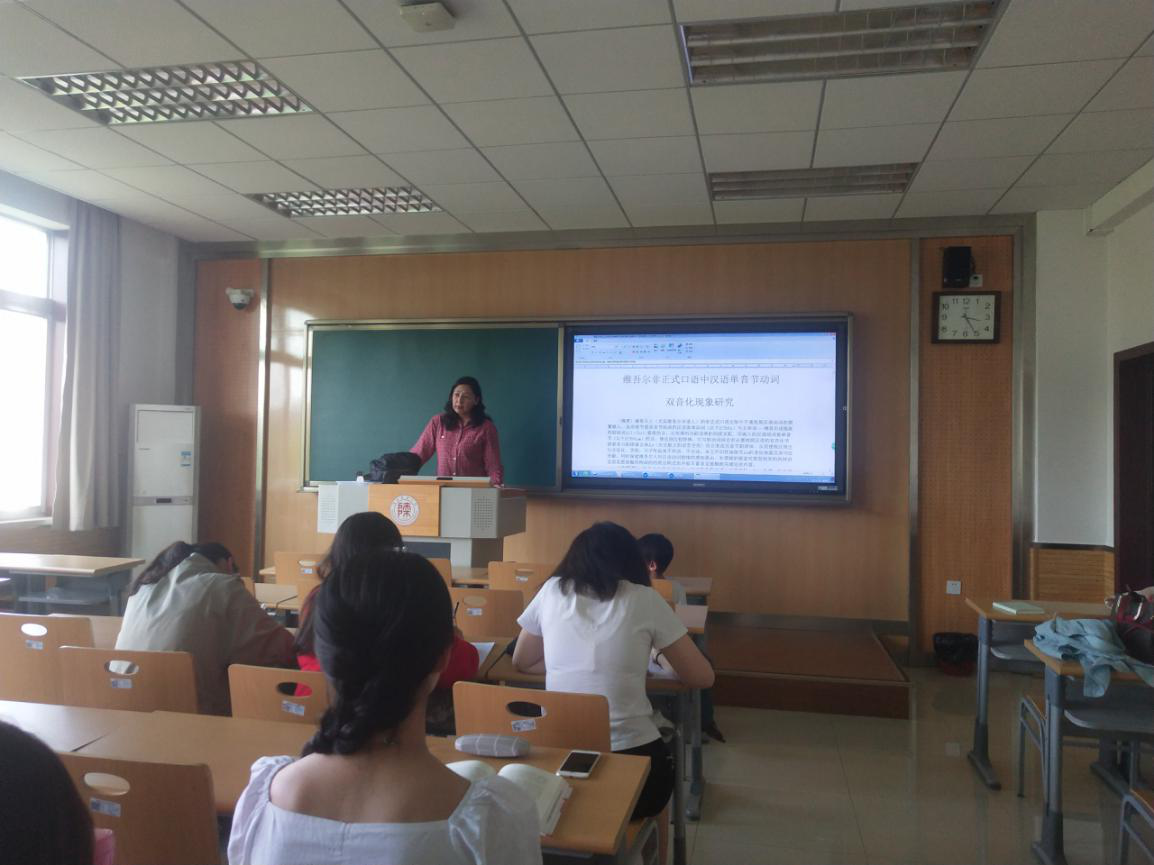 2018年5月15日,第108场博士学术报告以《喀什维吾尔族的“反语艺术”及其在言语交际中的作用》为题,由语言学及应用语言学专业博士研究生阿卜杜吾普尔·热合曼主讲。首先,他结合新疆喀什地区独特的自然环境与多民族、多文化共存的实际,介绍了“喀什反语”产生的背景和原因,并从“‘喀什反语’的特点”和“‘喀什反语’在文化交际中的应用”两个方面进行阐述。“喀什反语”具有浓厚的讽刺意味,适用场合广泛,且常常与维吾尔语中的熟语、新词相结合。其次,“喀什反语”的应用能够加强语言的感染力,提高交际效果。最后,他提出,随着“喀什反语”传播的范围不断扩大,人们在使用的同时,需要注意其科学性和适度性。