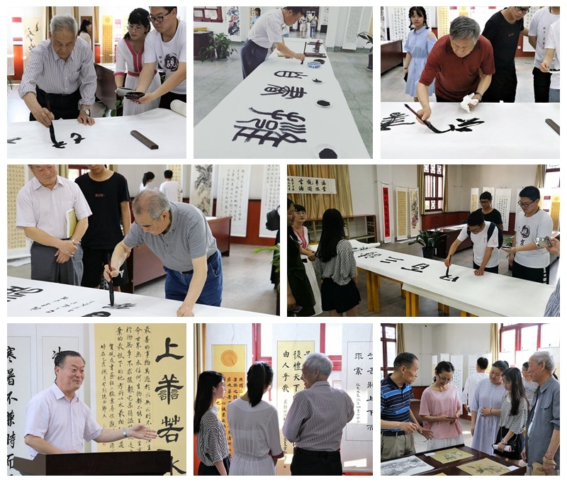开幕式结束之后,党怀兴副董事长向校书法研究会和砚友书画社赠送了自己的汉字学新著《汉字基础与常见使用问题辨析》。参加开幕式的师生共同参观了书画作品展,并在百米长卷上现场挥毫,切磋书艺。