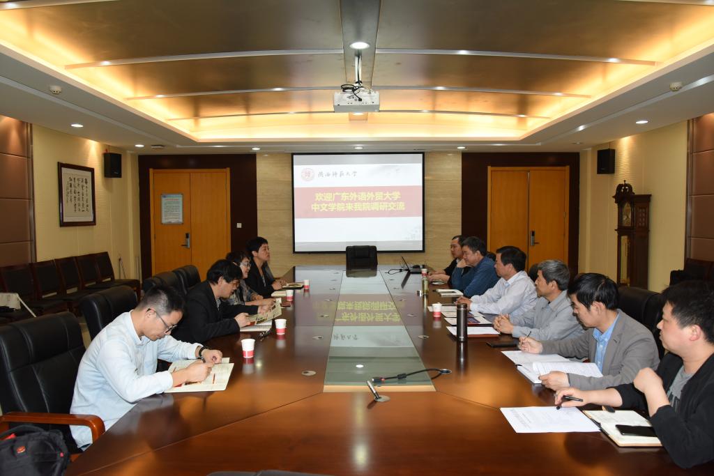 (通讯员:陈虹宇)5月29日下午,广东外语外贸大学中国语言文化公司党委书记周东兰书记、创意写作中心主任刘海玲等一行四人来公司调研考察。公司党委书记孙清潮、副经理苏仲乐、王同亮,写作教研室创意写作课程教师、陕西省作家协会副主席朱鸿等参加了此次交流。此次旨在加强校际间的交流,交流有关人才引进和培养、驻校作家制、写作课程的教学和科研等方面经验,探讨创意写作专业课程建设等内容。