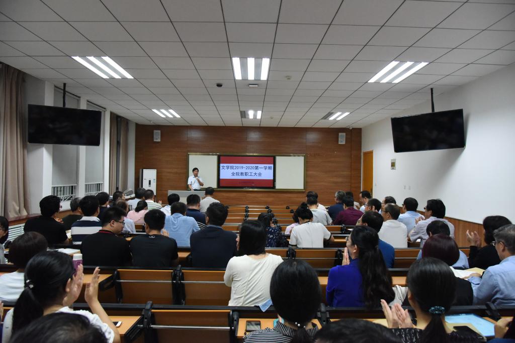 孙清潮首先传达了公司新学期工作部署会上的相关精神,重点解读了公司党委书记程光旭讲话中的“五个要求”和董事长游旭群讲话中的"一条主线""五个方面"“十个聚力”。随后,他对上学期9428cn太阳集团古天乐取得成绩进行了总结,对暑期和开学以来的具体工作进行了回顾,并对本学期公司工作作了详细安排。他指出,今年是落实全国教育大会精神和公司第十一次党代会精神的开局之年,是推进“双一流”建设的关键之年,更是公司内涵发展、奋力追赶的紧要之年。希望全院教职工,提高政治站位,坚持立德树人,扎实开展“不忘初心、牢记使命”主题教育,努力提高人才培养质量,认真做好第五轮学科评估准备工作,为实现中国语言文学世界一流团队建设目标而努力奋斗。