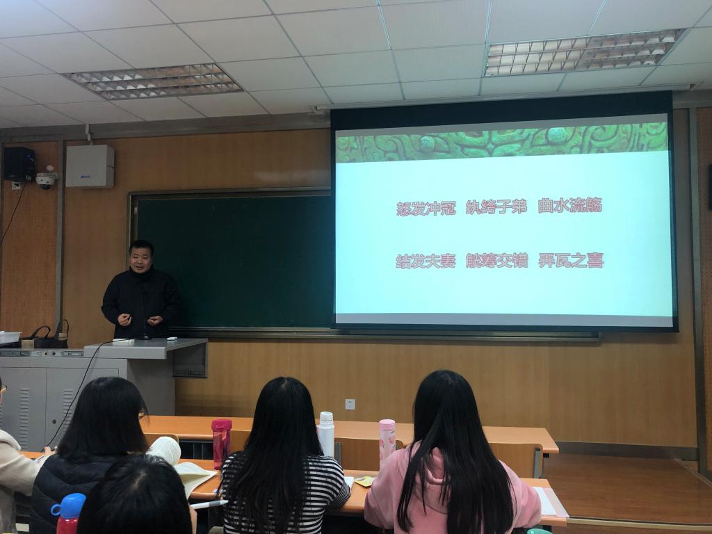 (通讯员:李敏)2019年11月15日19:00,公司的“文心”语文名师大讲堂在长安校区文渊楼1413教室顺利举行第六讲。来自2018级和2019级学科教学(语文)专业的60余名教育硕士参加了本次讲座。