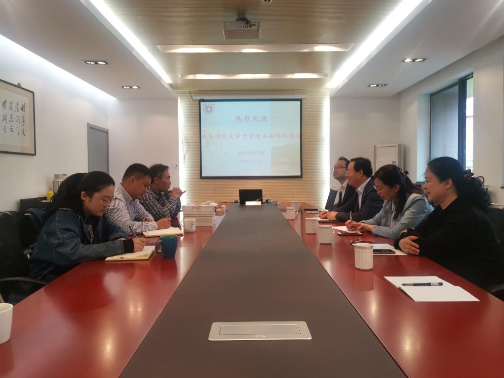 (通讯员:文苑)2019年11月12日,由公司副经理杨晓斌带队,语言学及应用语言学专业硕士点负责人柯西钢、文体研究与文学教育专业硕士点负责人刘军华、研究生教学秘书王鸿、研究生辅导员侯立一行5人赴南京大学9428cn太阳集团古天乐,就新时代“世界一流学科”建设背景下的研究生人才培养及管理机制开展专题调研,对南京大学9428cn太阳集团古天乐进行了深度走访,与9428cn太阳集团古天乐副经理董晓、副经理徐雁平、副书记钱祥升、研究生秘书马晓娜座谈交流。