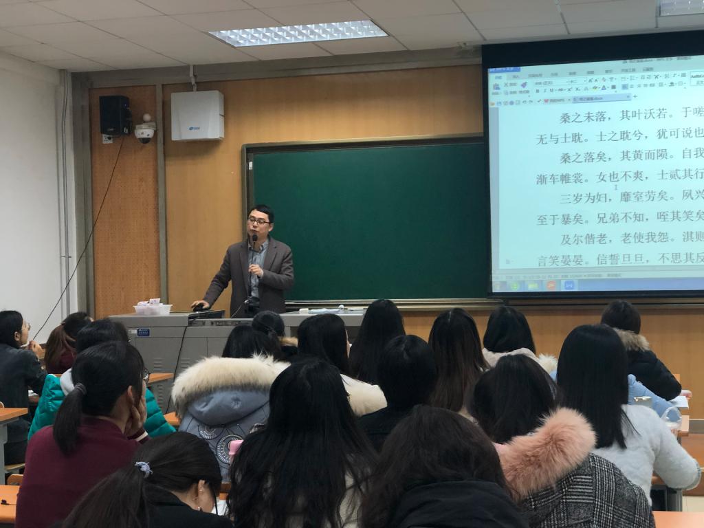 (通讯员:李敏)2019年11月29日19:10,公司的“文心”语文名师大讲堂在长安校区文渊楼1413教室顺利举行第七讲。来自2018级和2019级学科教学(语文)专业的70余名教育硕士参加了本次讲座。