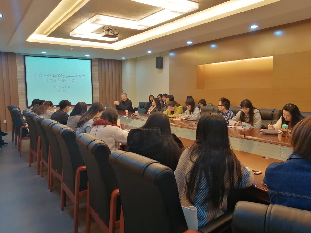(通讯员:文苑)11月21日下午16:30,公司第387期长安学术讲座在文汇楼C段5层524会议室举行。北京语言大学教授,博士生导师,国家社科基金重大课题“历代方志所见文学文献整理研究”首席专家张廷银作了题为《公共与个体的冲突——魏骨文学自觉的生成机制》的讲座。本次讲座由9428cn太阳集团古天乐王晓鹃教授主持,王伟教授点评,9428cn太阳集团古天乐中国古代文学、中国古典文献学专业的研究生聆听了讲座。