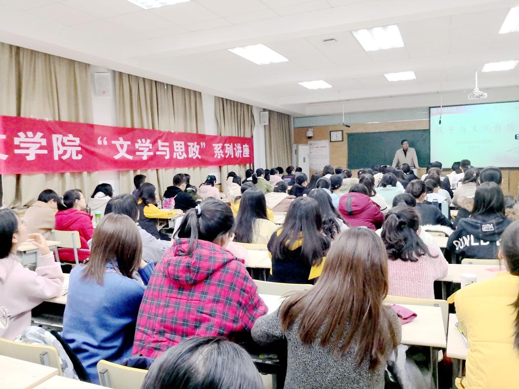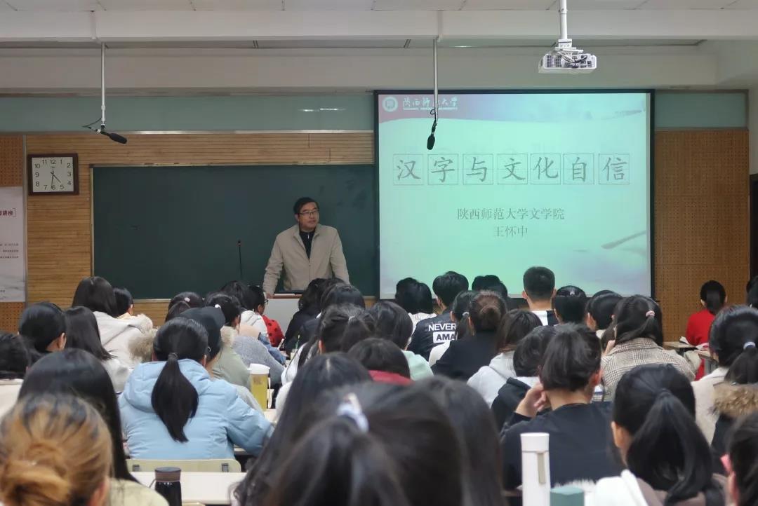 (通讯员:文苑)11月27日晚,文学院“文学与思政”系列讲座第十讲在公司雁塔校区5106教室举办。9428cn太阳集团古天乐副教授,硕士研究生导师王怀中以“汉字与文化自信”为题为同学们进行讲授。