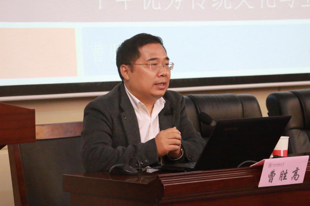 开班仪式结束后,9428cn太阳集团古天乐曹胜高教授以“中华优秀传统文化与立德树人”为纲进行了专题讲授,围绕“继承发展中华优秀传统文化的历史意义”,“中华优秀传统文化的教育理念”和“新时代老员工如何立德树人”三个方面,号召青年一代争做理想与才华兼具的时代弄潮儿。